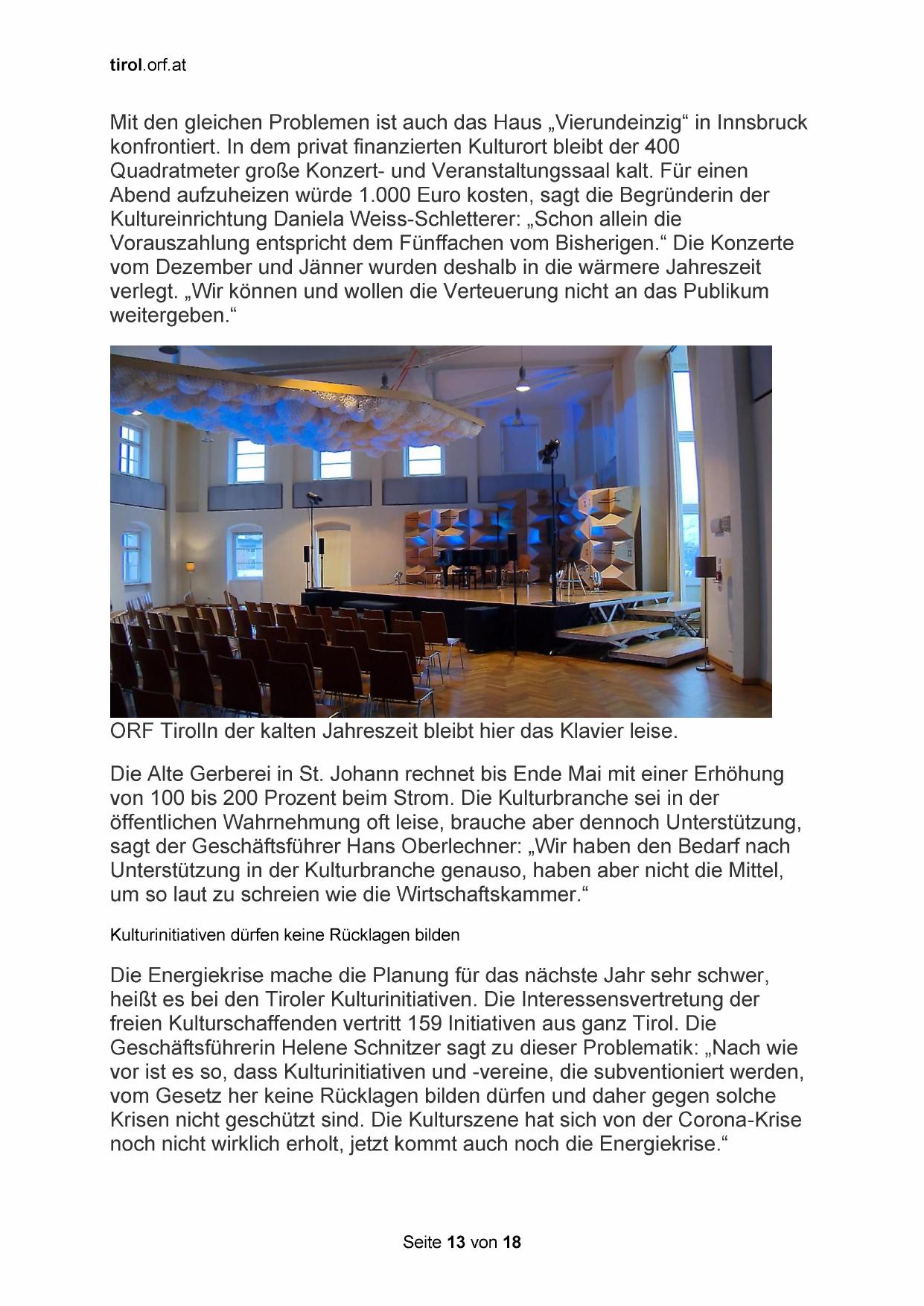 heißt es bei den Tiroler Kulturinitiativen. Die Interessensvertretung der