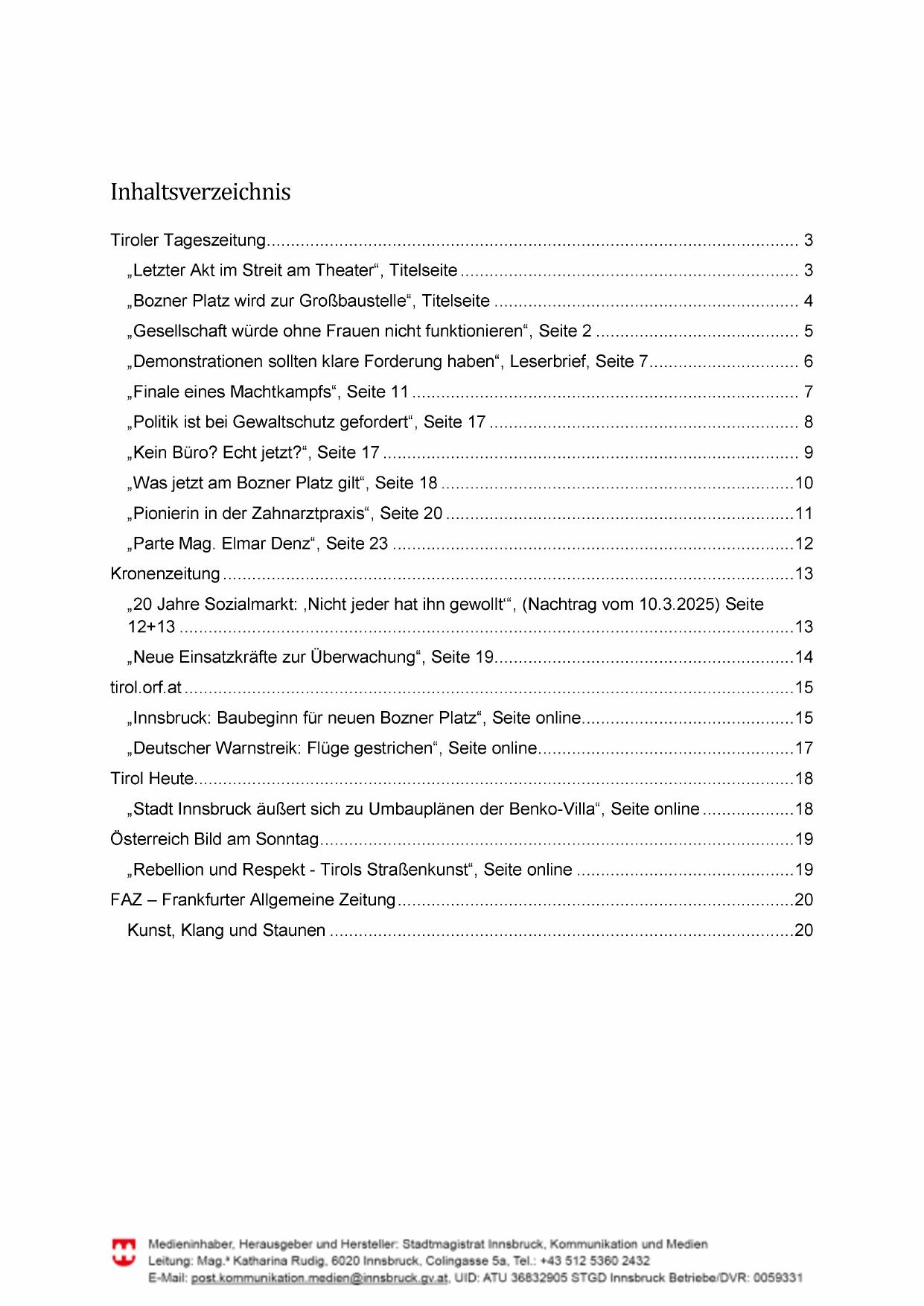 „Stadt Innsbruck äußert sich zu Umbauplänen der Benko-Villa“, Seite online................... 18