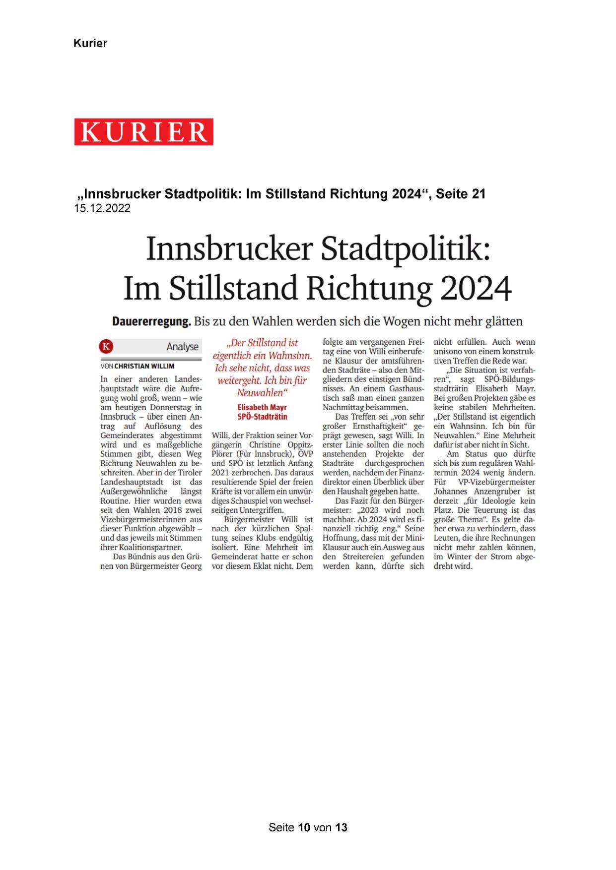 „Innsbrucker Stadtpolitik: Im Stillstand Richtung 2024“;, Seite 21