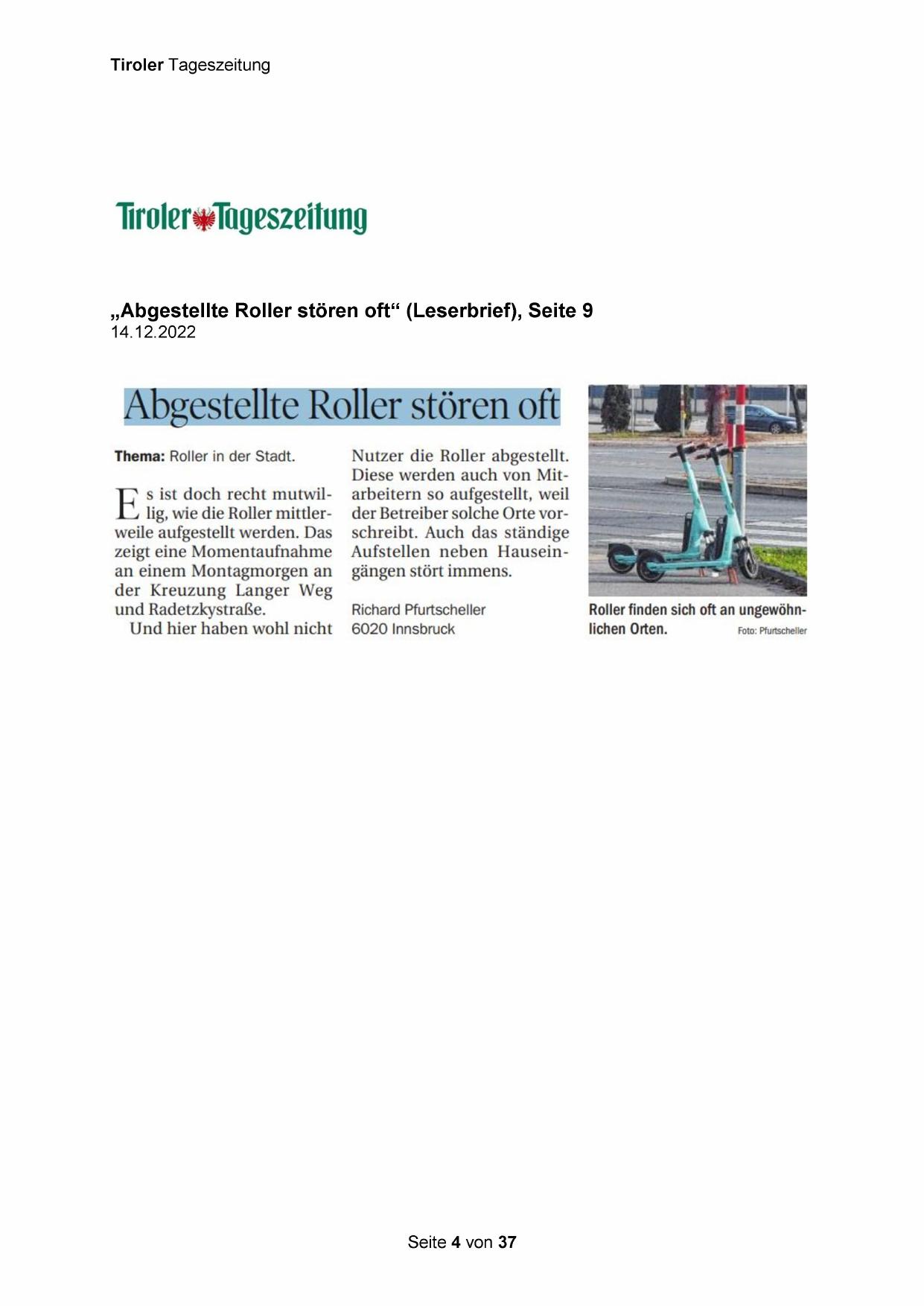 „Abgestellte Roller stören oft“ (Leserbrief), Seite 9
