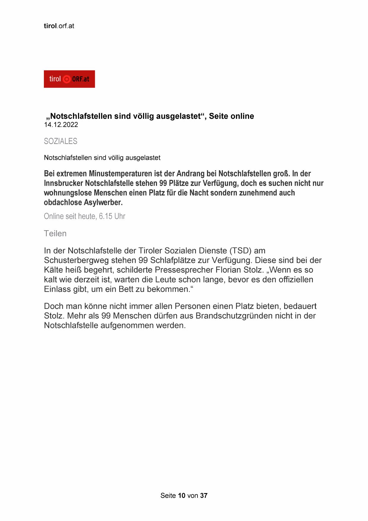 „Notschlafstellen sind völlig ausgelastet‘“, Seite online