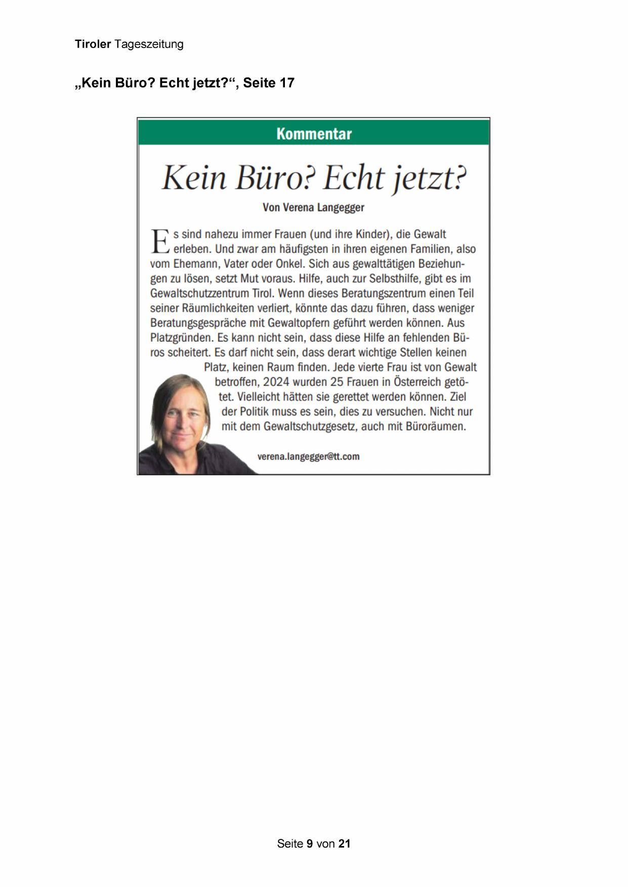 Gewaltschutzzentrum Tirol. Wenn dieses Beratungszentrum einen Teil