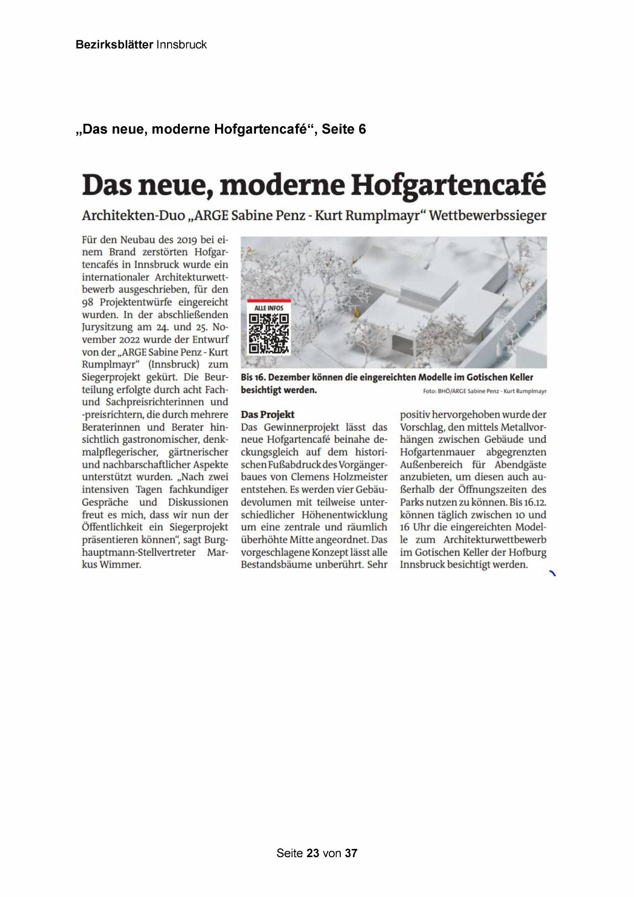 Für den Neubau des 2019 bei einem Brand zerstörten Hofgartencafes in Innsbruck wurde ein