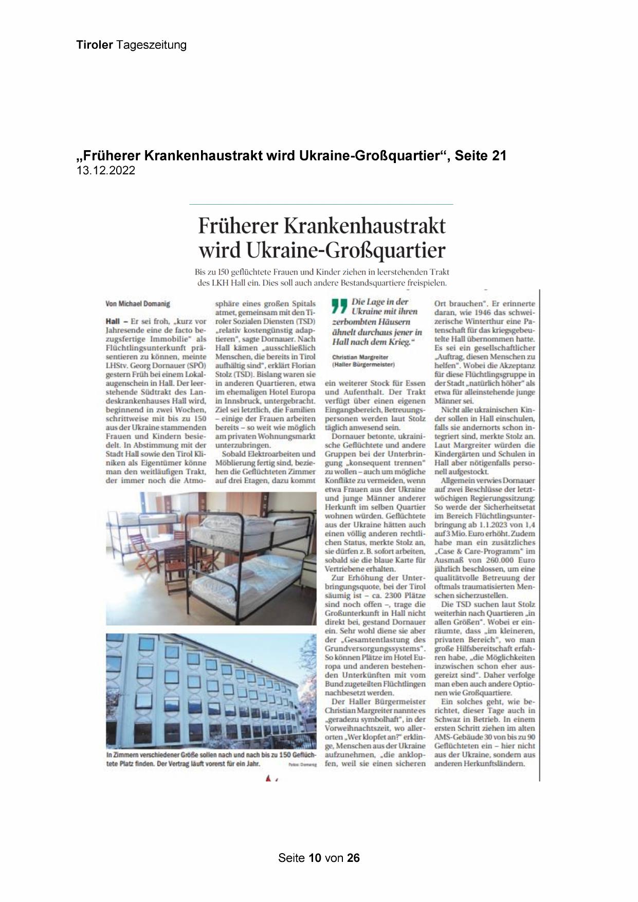 „Früherer Krankenhaustrakt wird Ukraine-Großquartier“, Seite 21