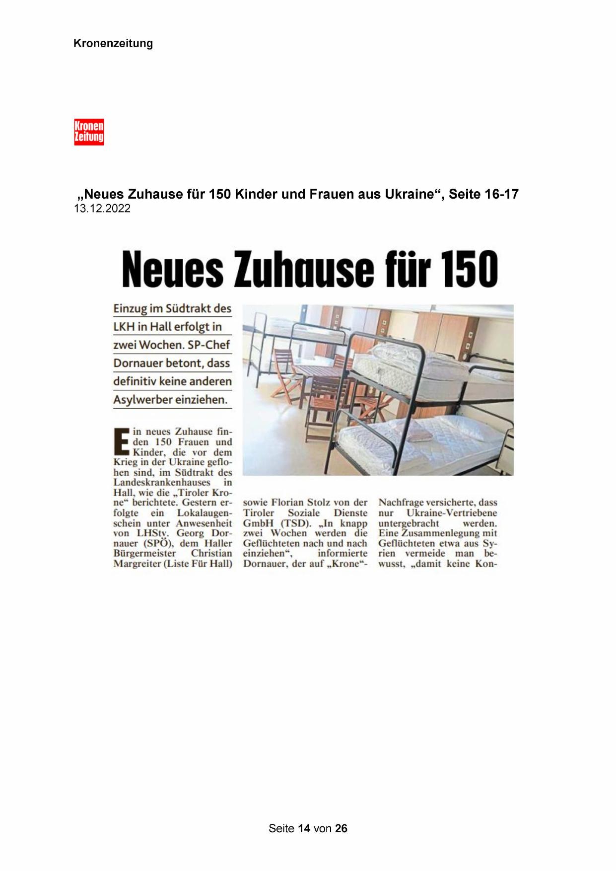 folgte ein Lokalaugen- Tiroler Soziale Dienste nur Ukraine-Vertriebene