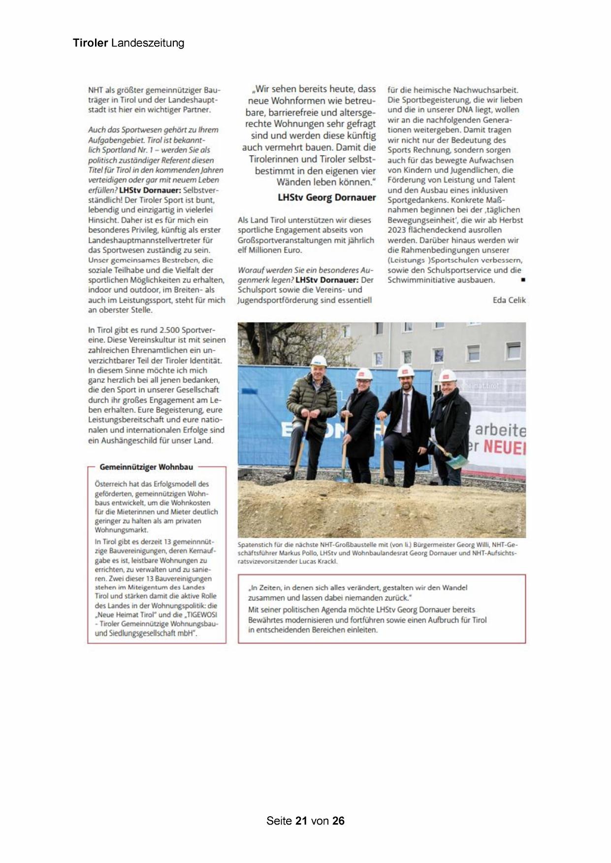 NHT als größter gemeinnütziger Bauträger in Tirol und der Landeshauptstadt ist hier ein wichtiger Partner.