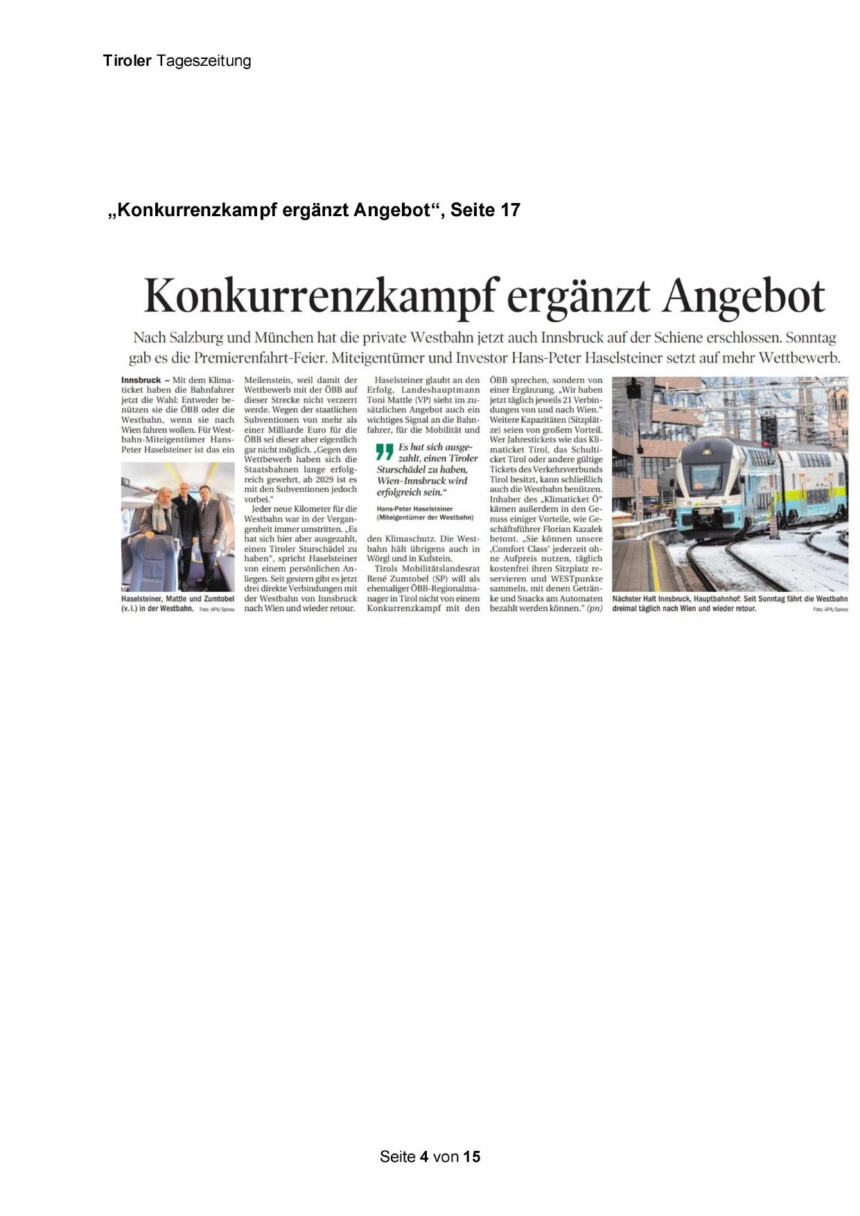 gab es die Premierenfahrt-Feier. Miteigentümer und Investor Hans-Peter Haselsteiner setzt auf mehr Wettbewerb.
