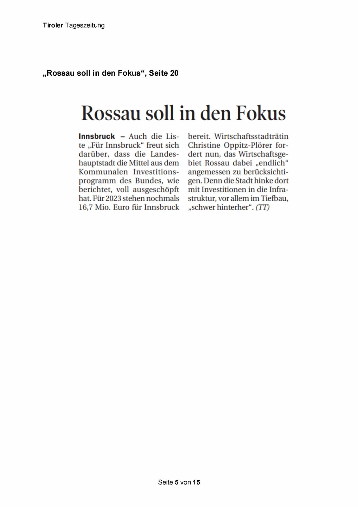 Christine Oppitz-Plörer fordert nun, das Wirtschaftsgebiet Rossau dabei „endlich“