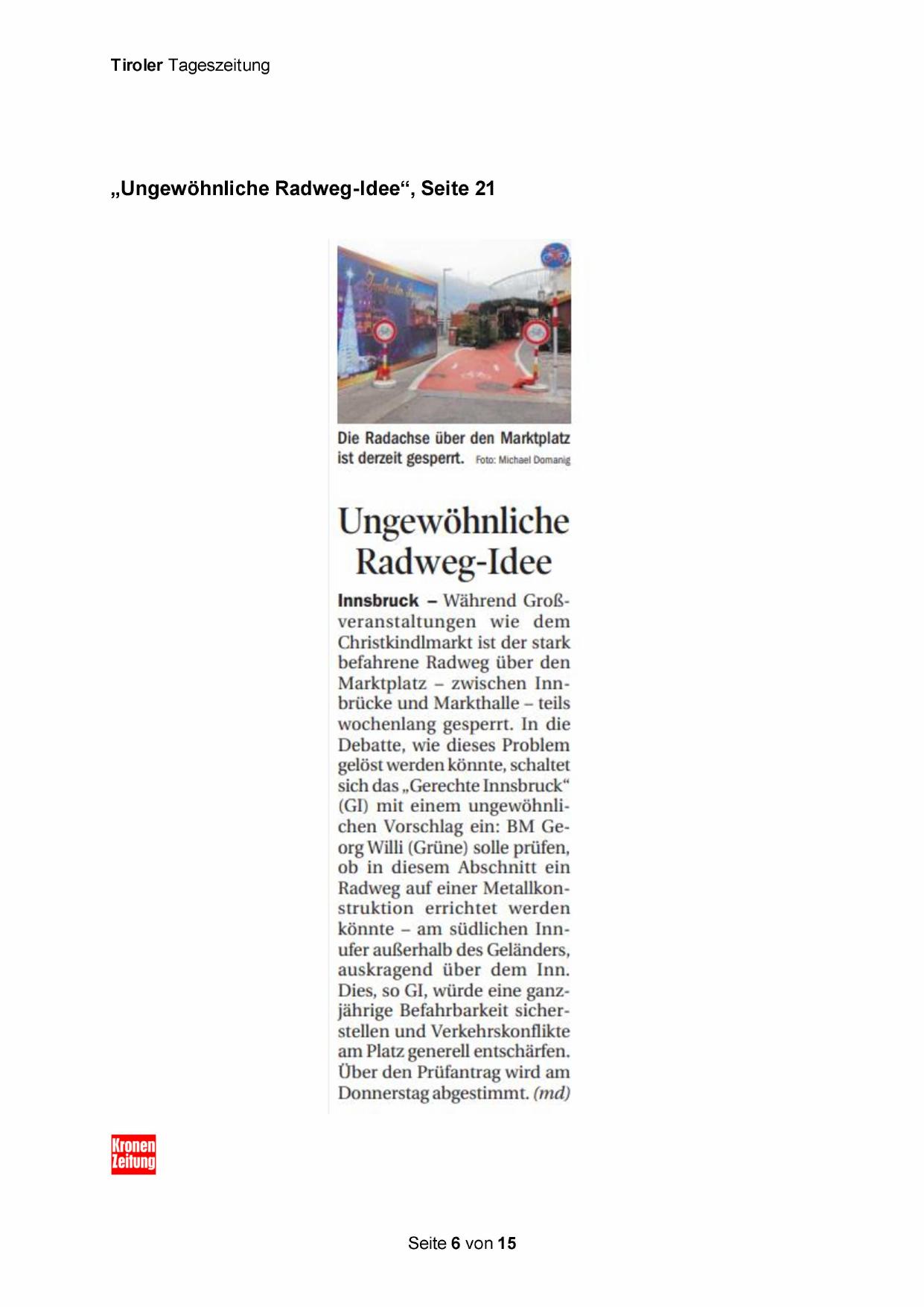 (GI) mit einem ungewöhnlichen Vorschlag ein: BM Georg Willi (Grüne) solle prüfen,