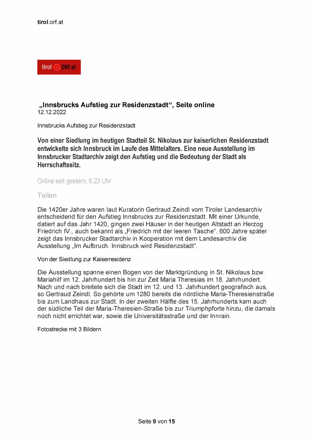 „Innsbrucks Aufstieg zur Residenzstadt“, Seite online