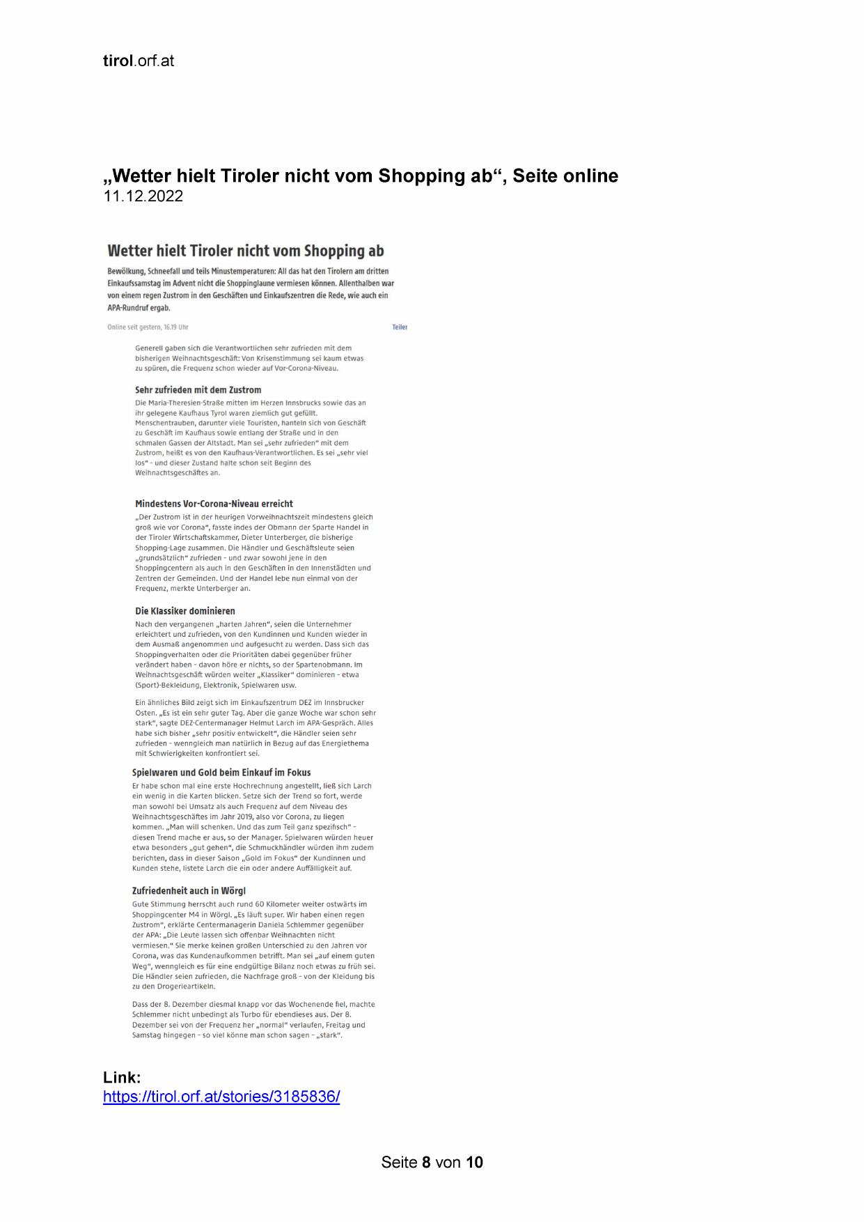 „Wetter hielt Tiroler nicht vom Shopping ab“, Seite online