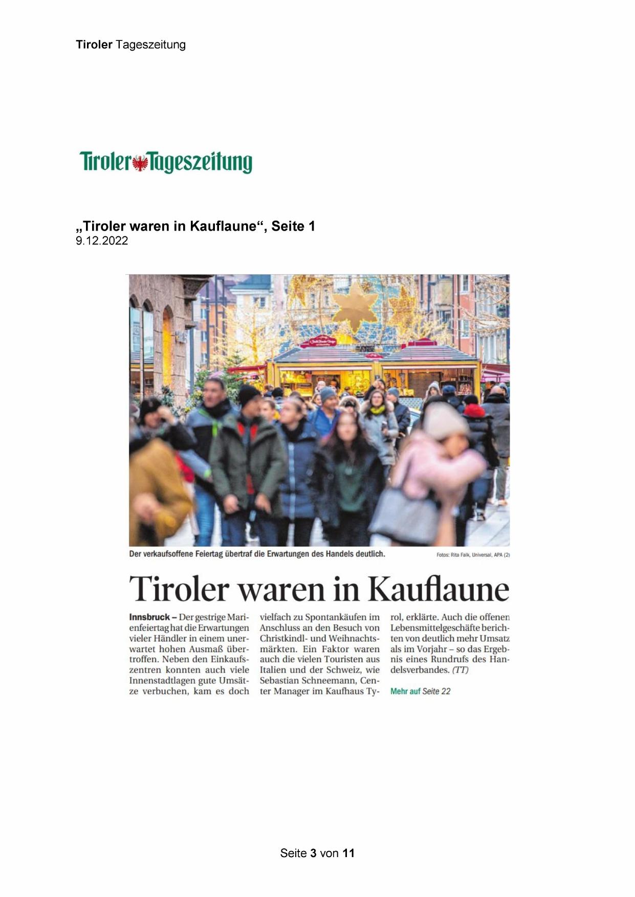 „Tiroler waren in Kauflaune“, Seite 1