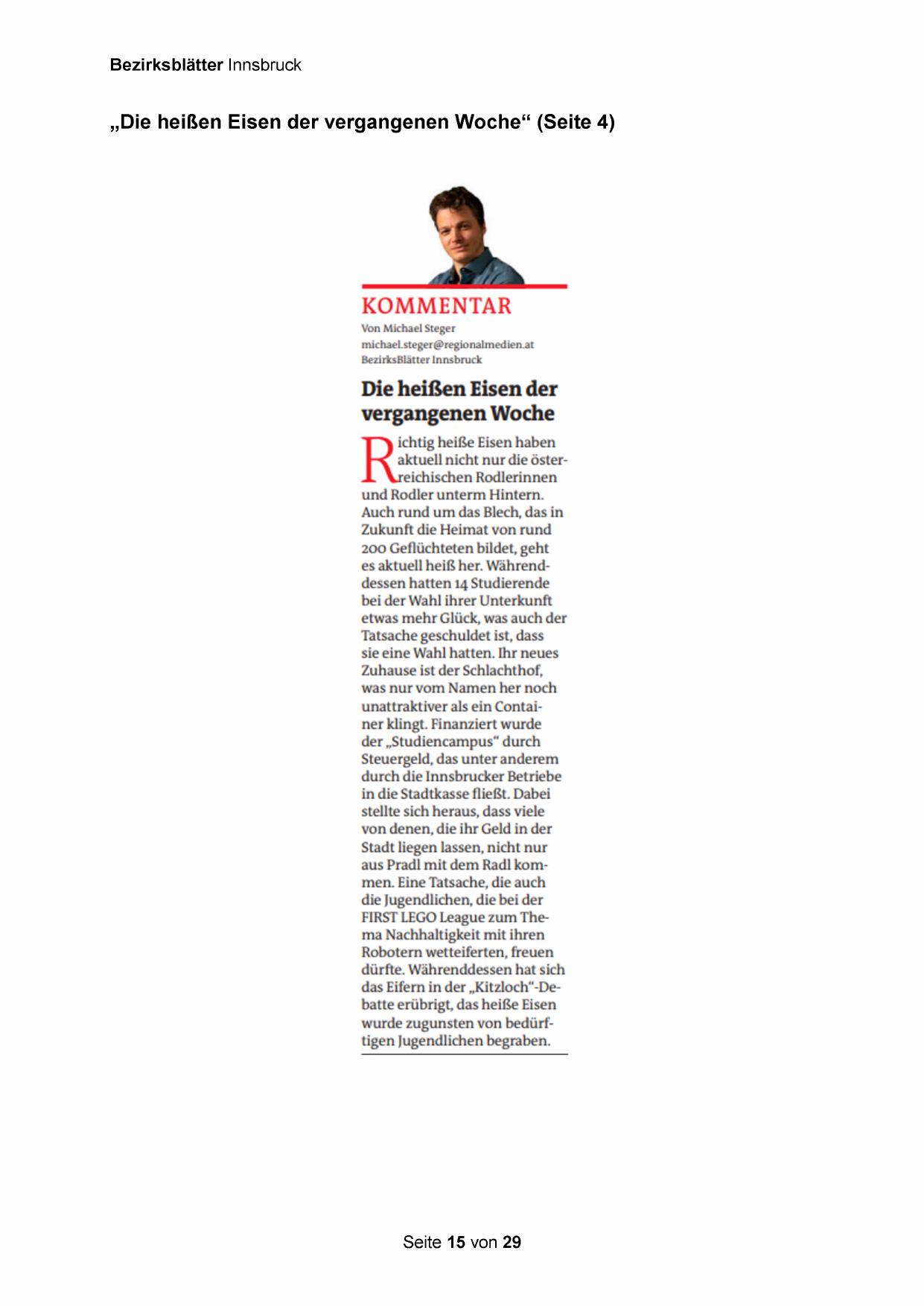 aus Pradl mit dem Radl kommen. Eine Tatsache, die auch