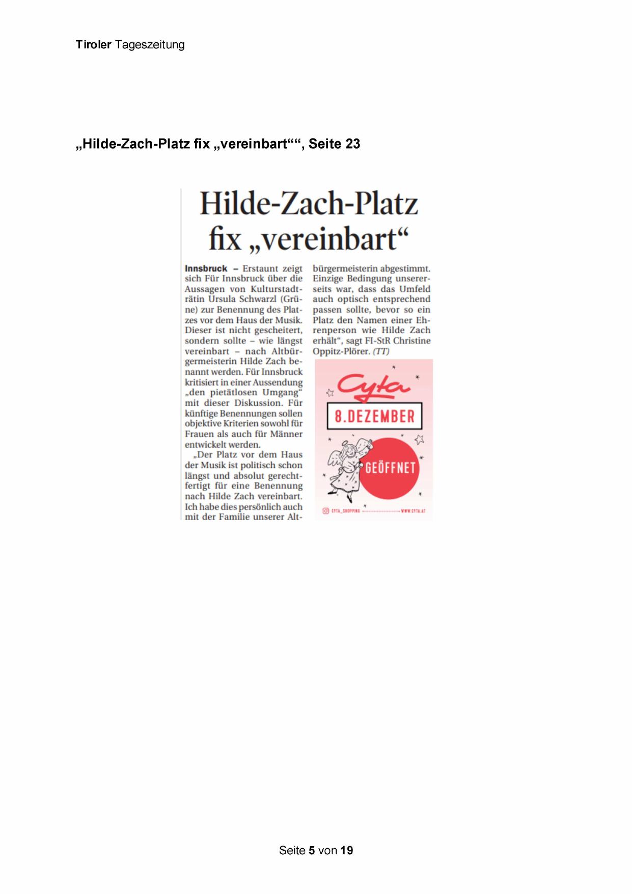 „Hilde-Zach-Platz fix „vereinbart““, Seite 23