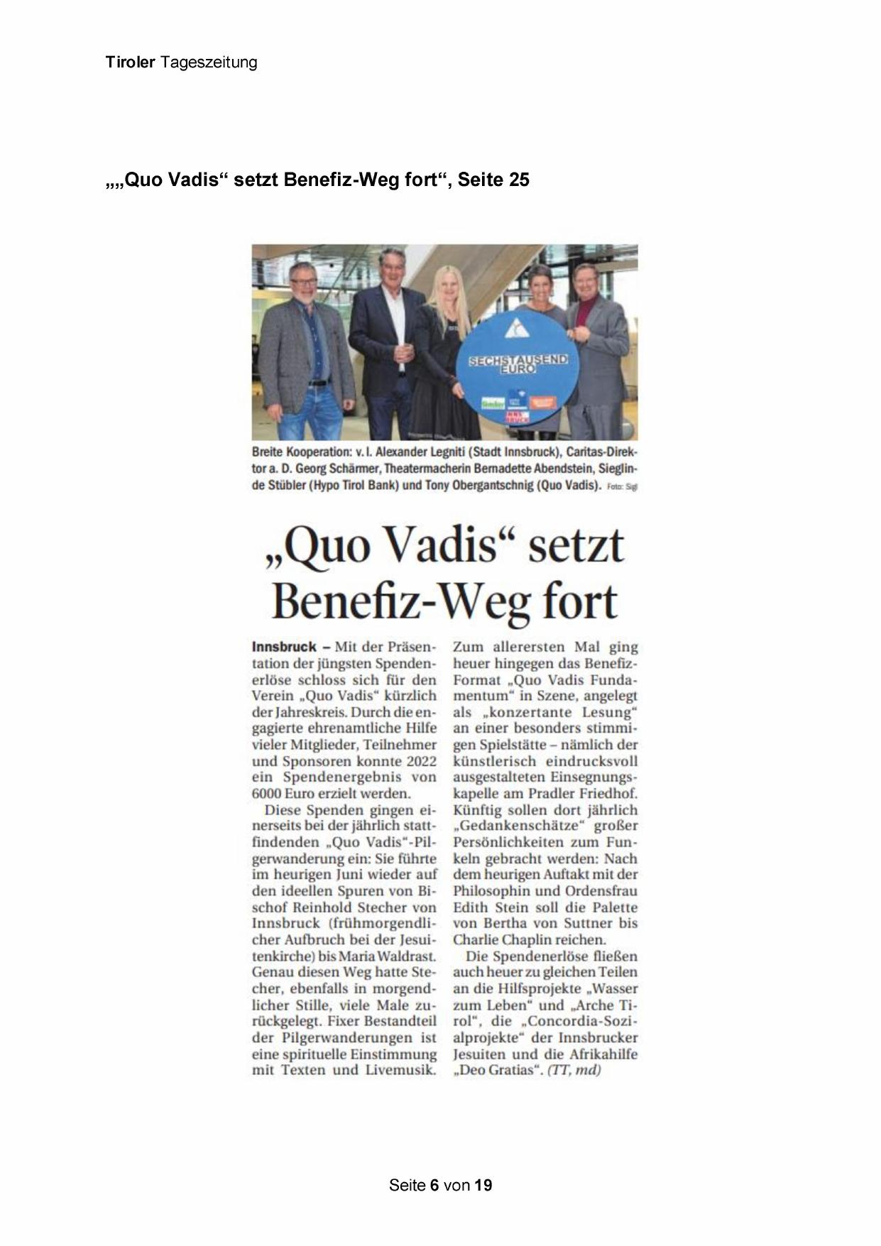 „„Quo Vadis“ setzt Benefiz-Weg fort“, Seite 25