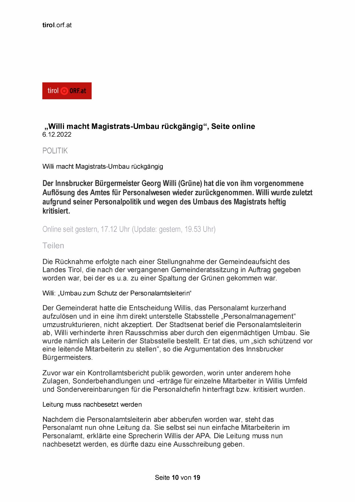 „Willi macht Magistrats-Umbau rückgängig“, Seite online
