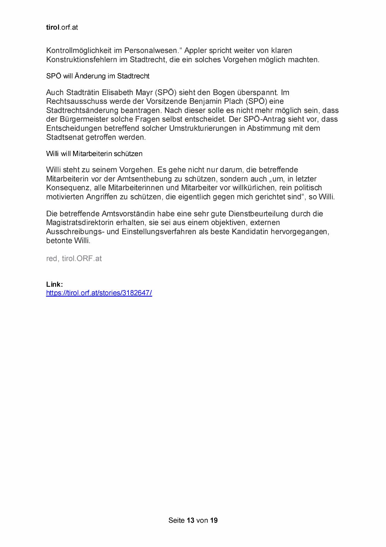 der Bürgermeister solche Fragen selbst entscheidet. Der SPÖ-Antrag sieht vor, dass