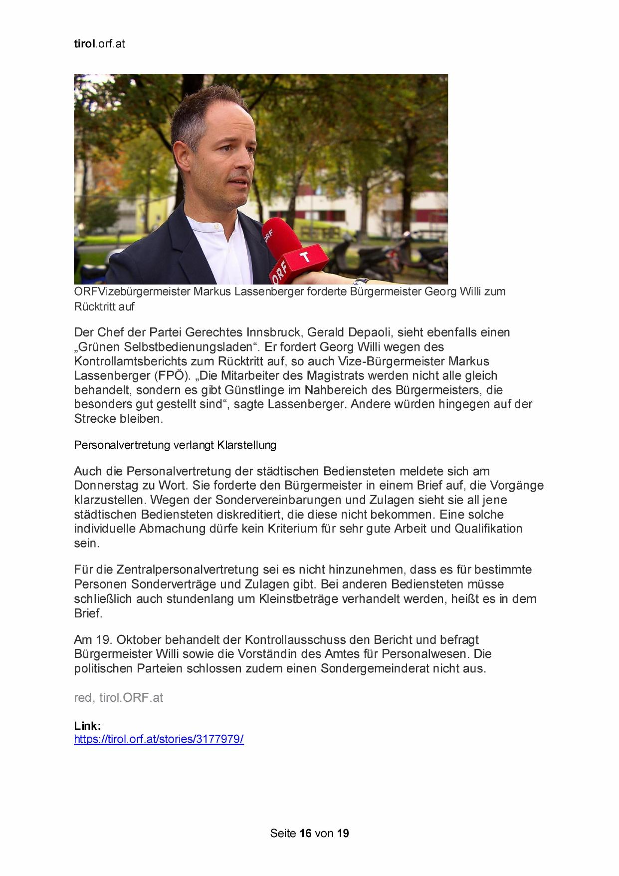 ORFVizebürgermeister Markus Lassenberger forderte Bürgermeister Georg Willi zum