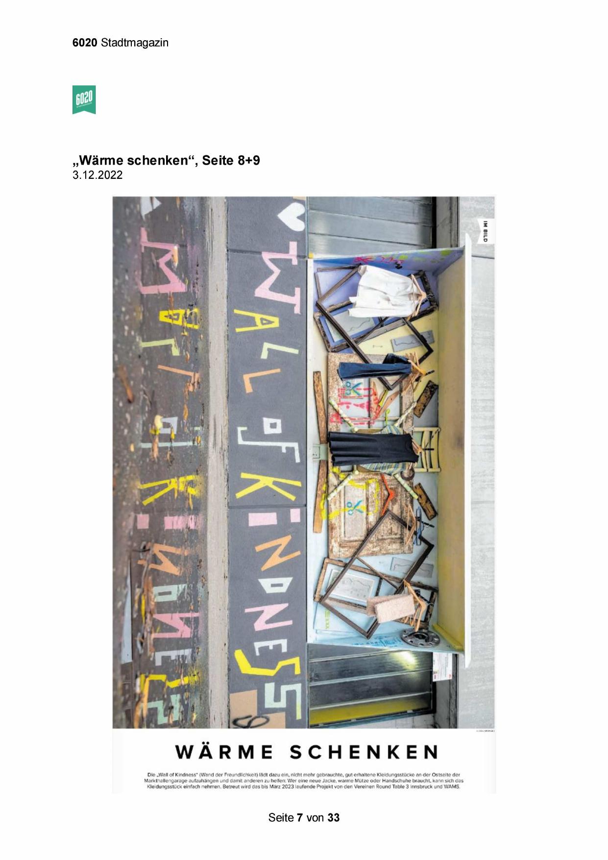 Kleidungsstück einfach nehmen. Betreut wird das bis März 2023 laufende Projekt von den Vereinen Round Table 3 Innsbruck und WAMS.