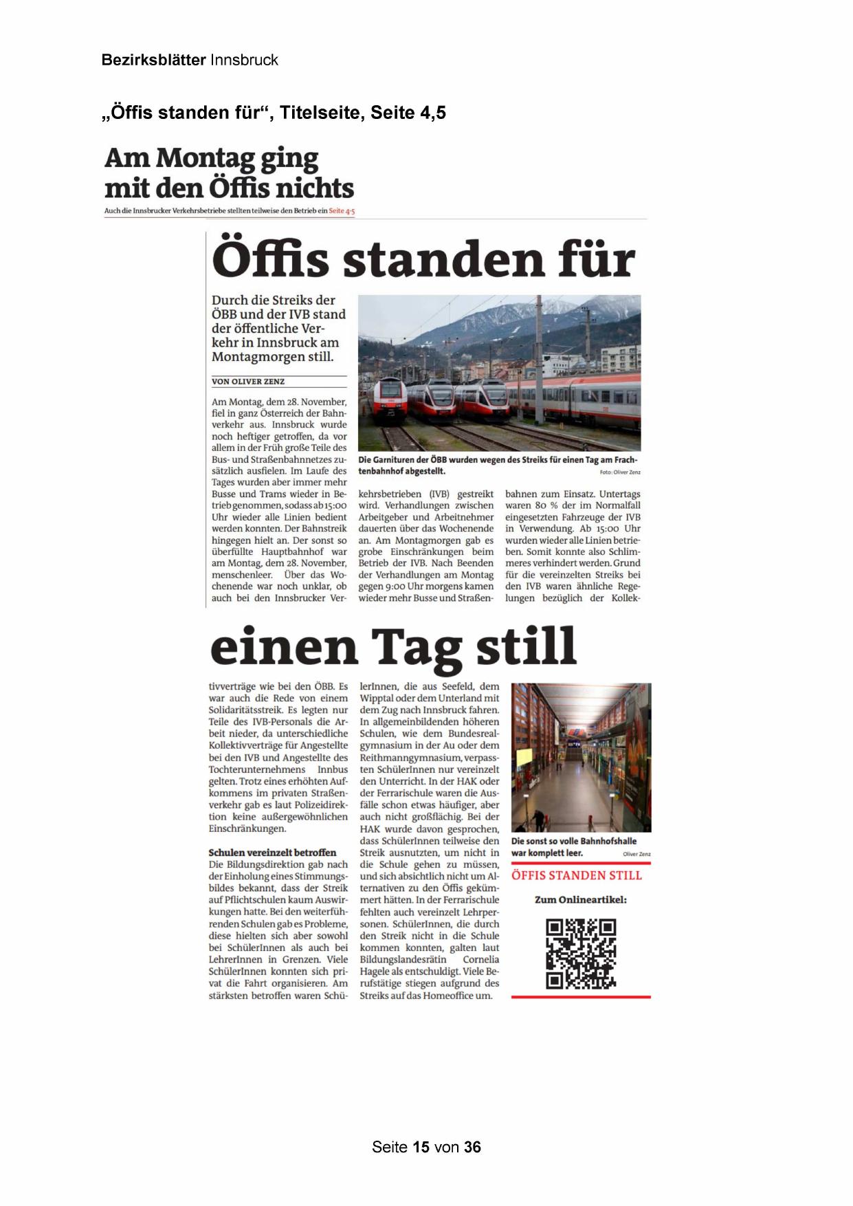 Auch die Innsbrucker Verkehrsbetriebe stellten teilweise den Betrieb ein Seite 4-5