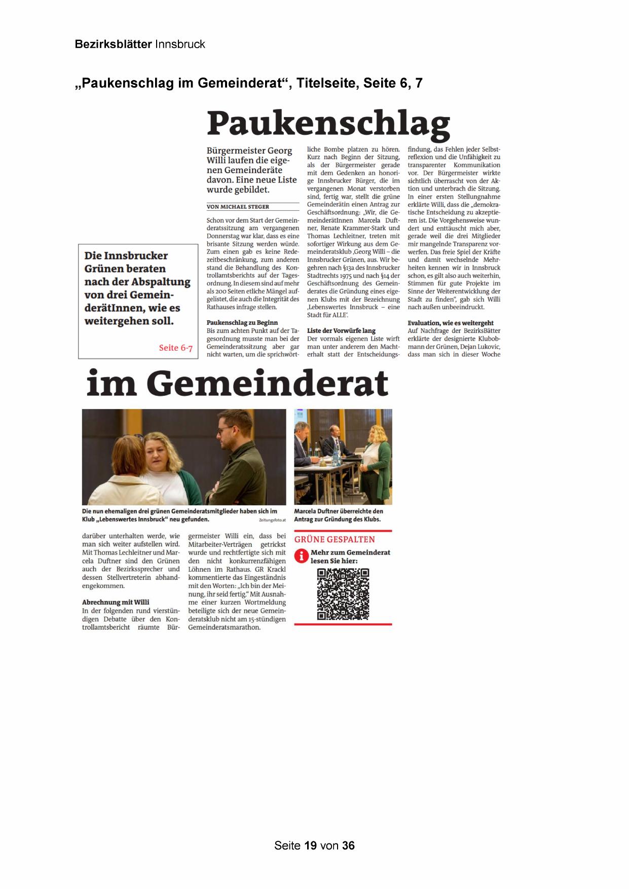 Klub „Lebenswertes Innsbruck“ neu gefunden.