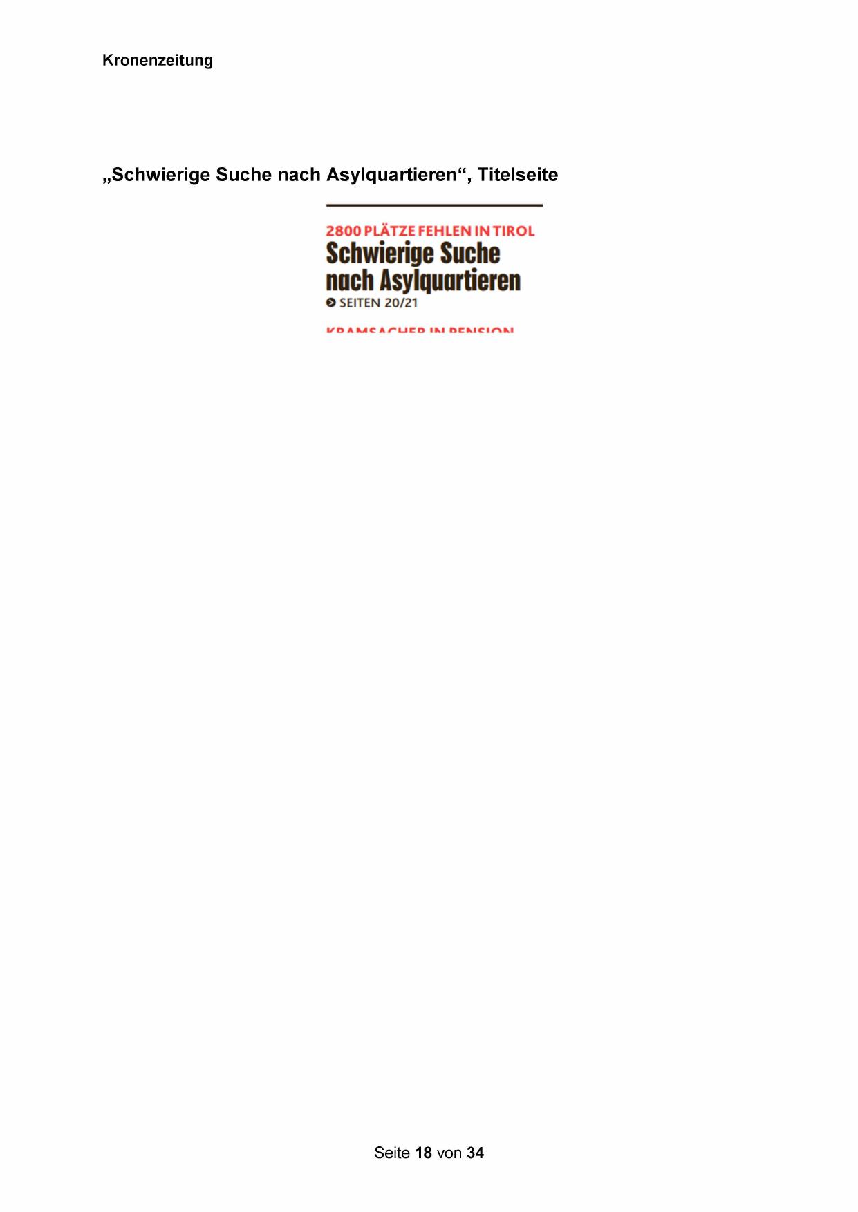 „Schwierige Suche nach Asylquartieren“, Titelseite