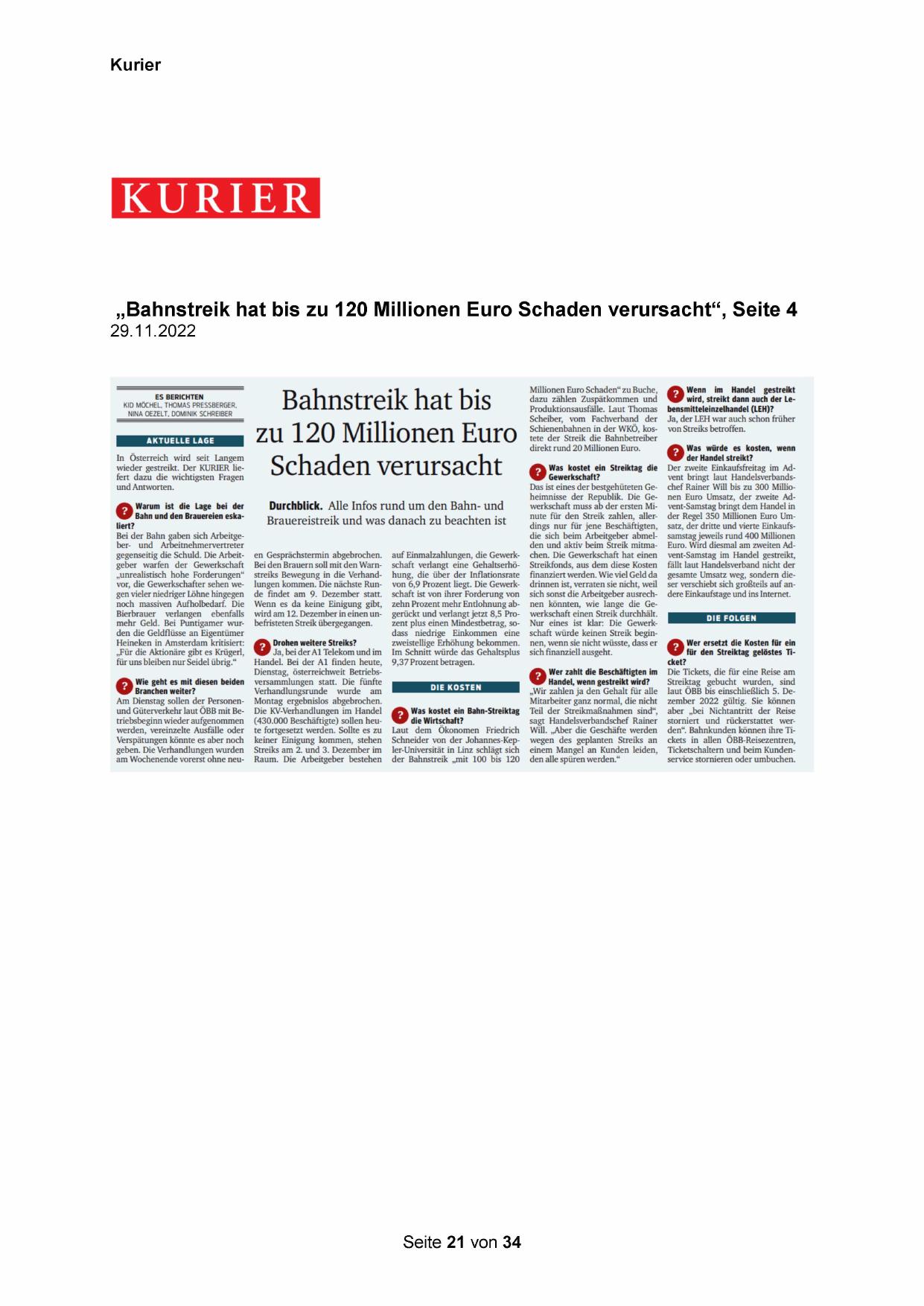 Schienenbahnen in der WKÖ, kostete der Streik die Bahnbetreiber