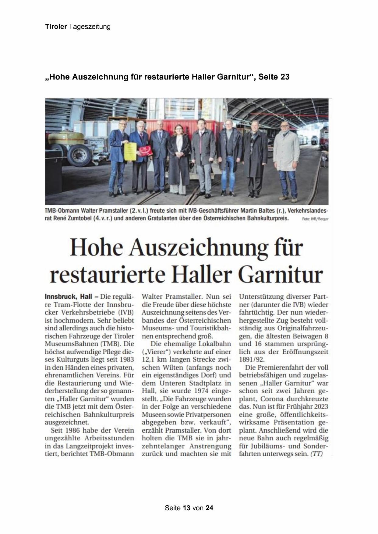 „Hohe Auszeichnung für restaurierte Haller Garnitur“, Seite 23