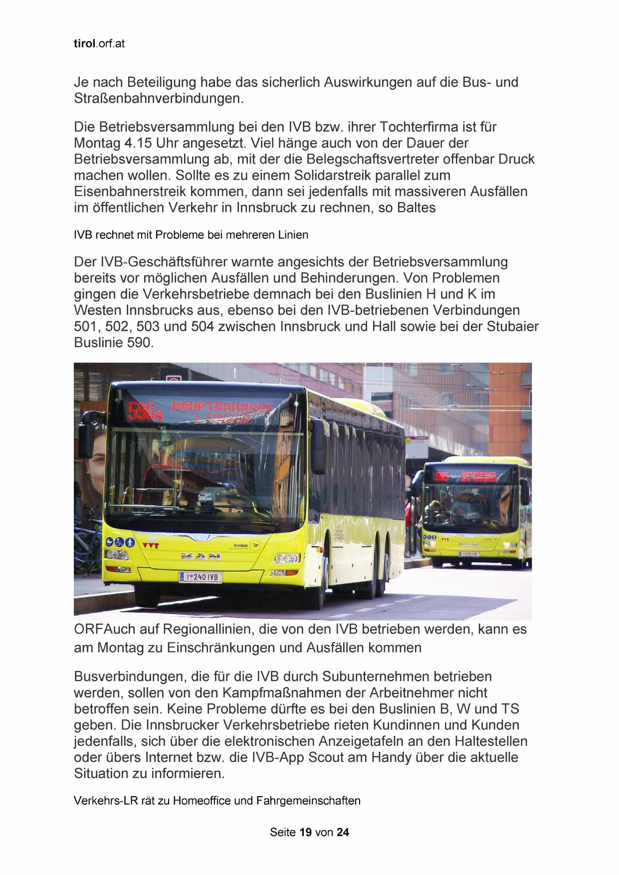 Die Betriebsversammlung bei den IVB bzw. ihrer Tochterfirma ist für
