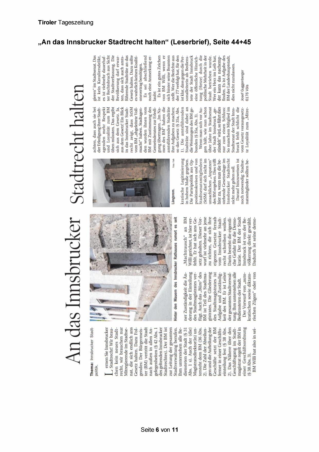 „An das Innsbrucker Stadtrecht halten“ (Leserbrief), Seite 44+45