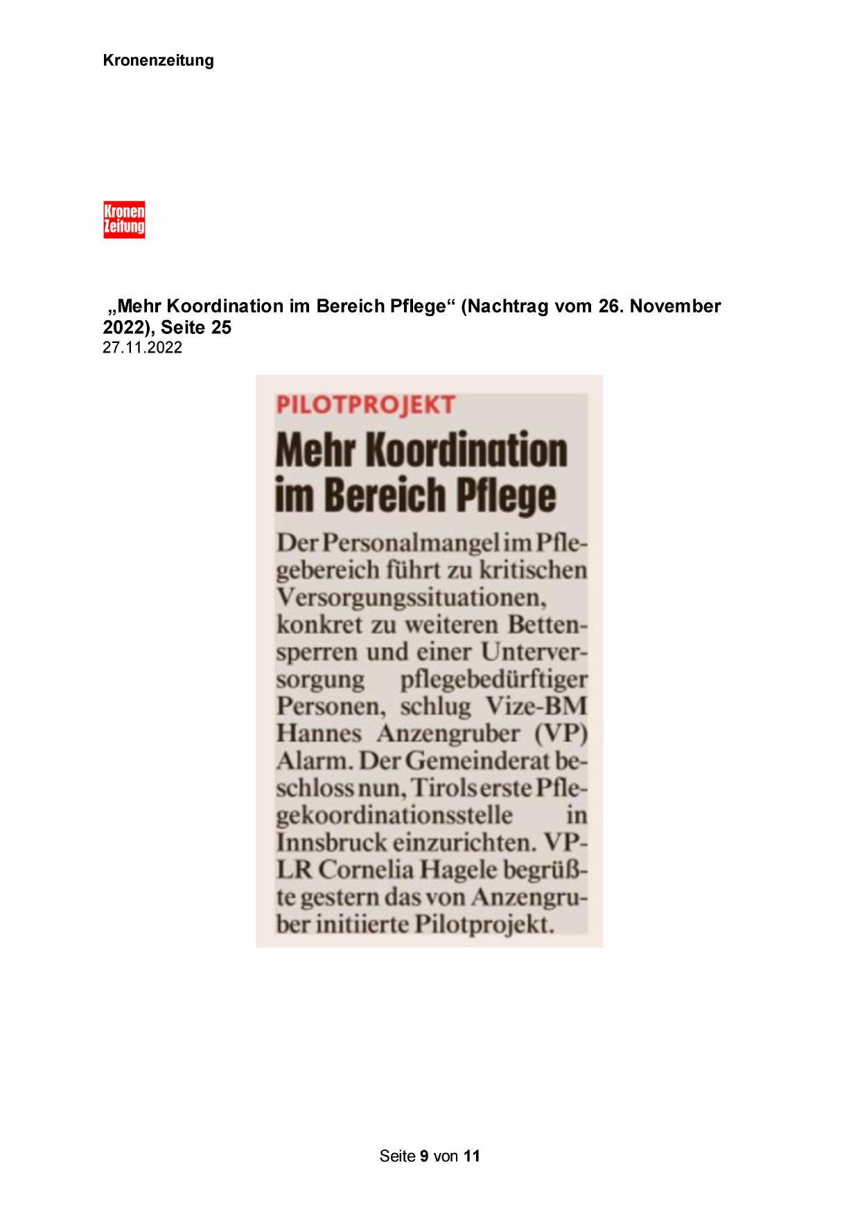 „Mehr Koordination im Bereich Pflege‘“ (Nachtrag vom 26. November