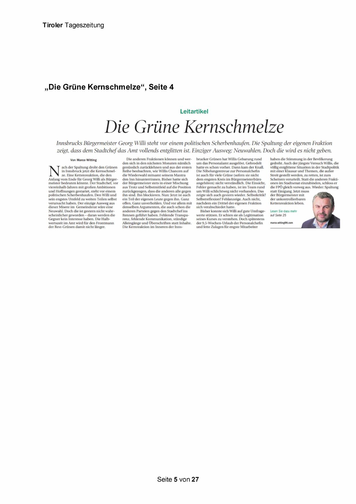 Anfang vom Ende für Georg Willi als Bürgermeister bedeuten könnte. Der Stadtchef, vor