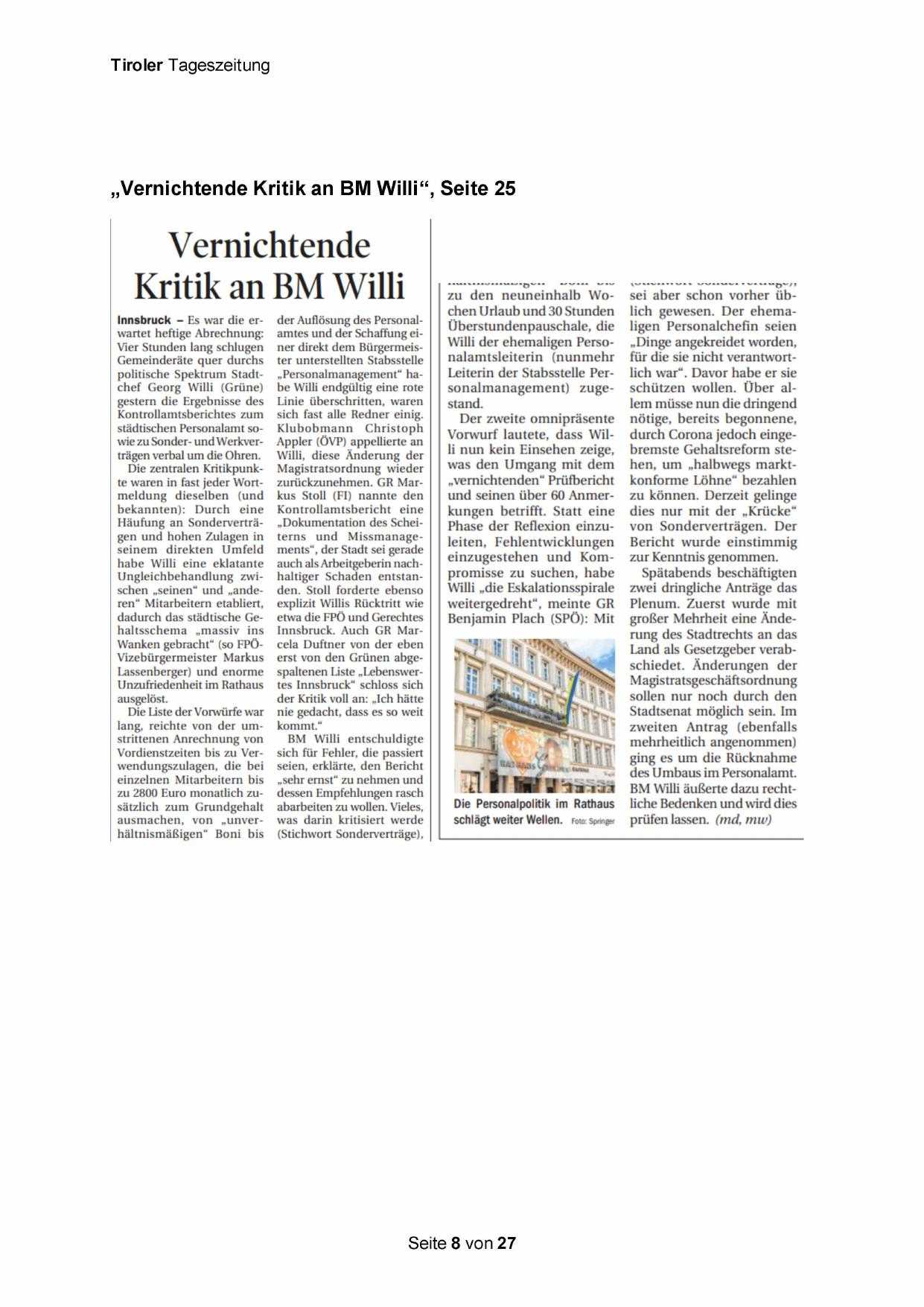 „Vernichtende Kritik an BM Willi“, Seite 25