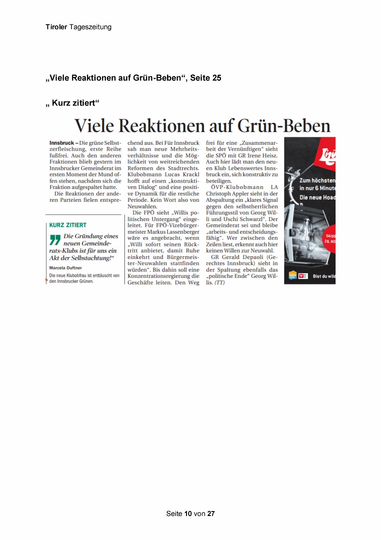 Auch hier lädt man den neuen Klub Lebenswertes Innsbruck ein, sich konstruktiv zu