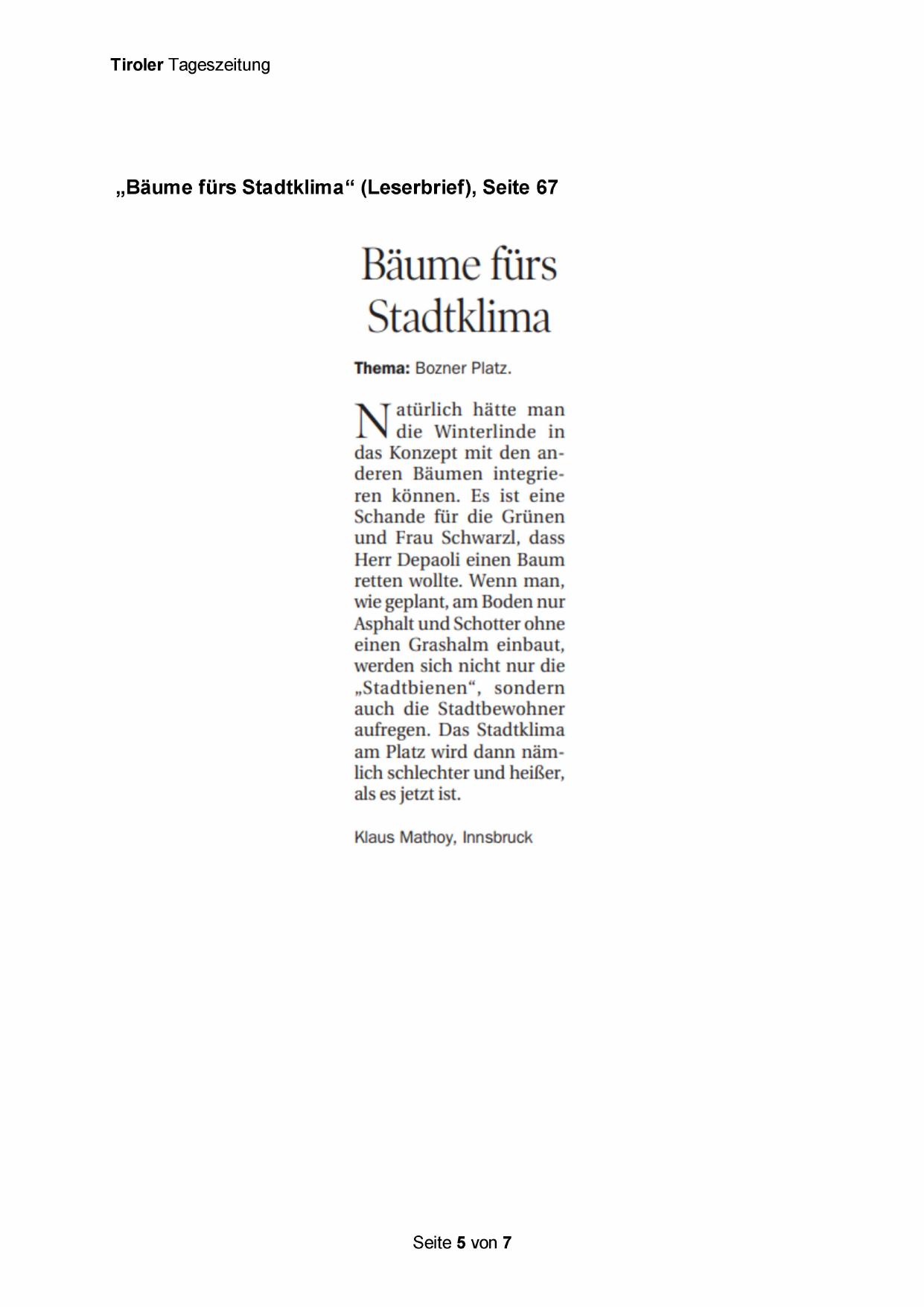 „Bäume fürs Stadtklima“ (Leserbrief), Seite 67