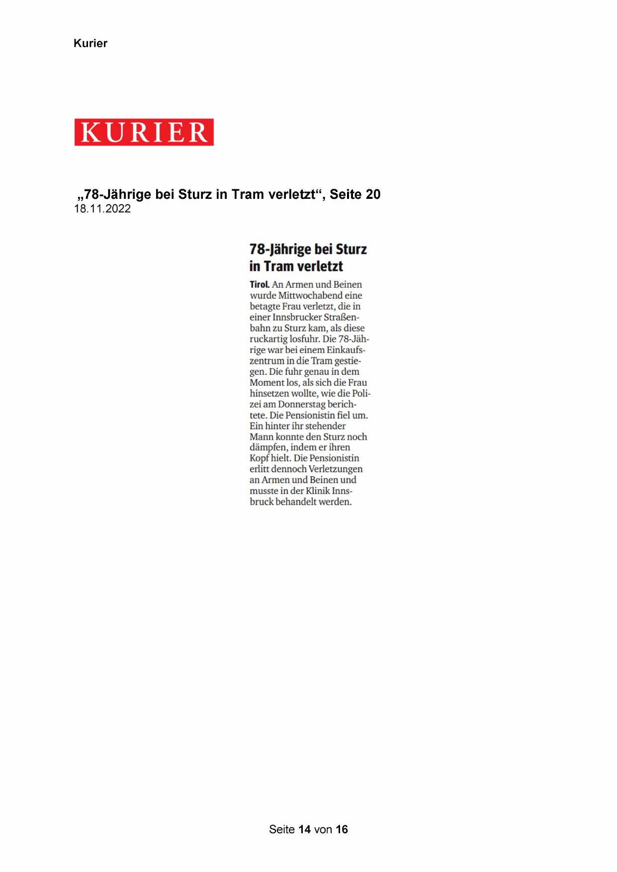 „78-Jährige bei Sturz in Tram verletzt‘“, Seite 20