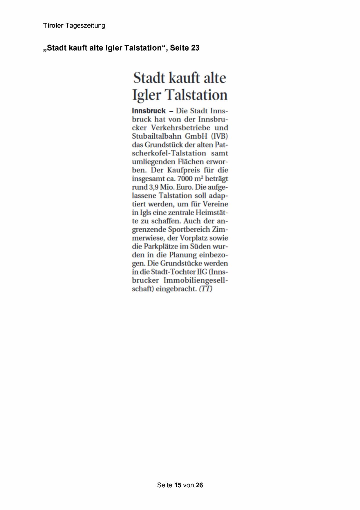 „Stadt kauft alte Igler Talstation“, Seite 23