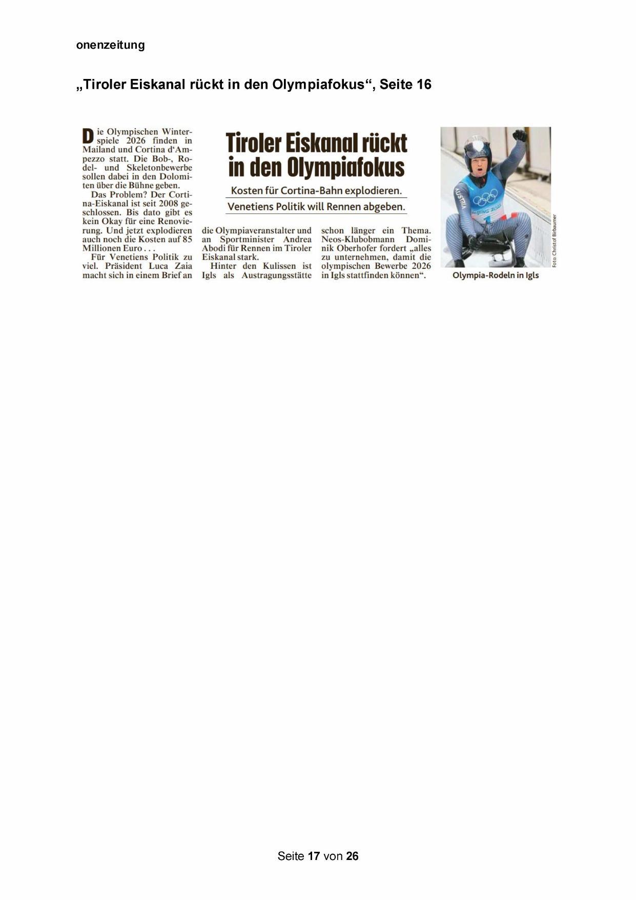 „Tiroler Eiskanal rückt in den Olympiafokus“, Seite 16