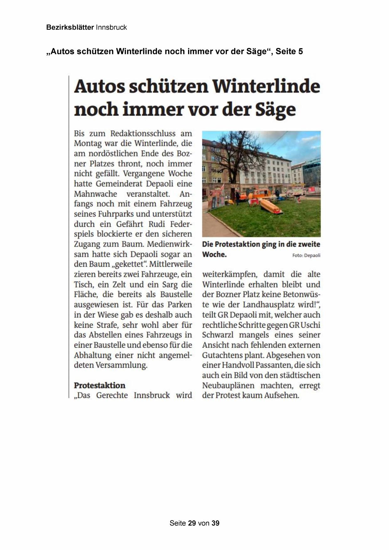 „Autos schützen Winterlinde noch immer vor der Säge“, Seite 5