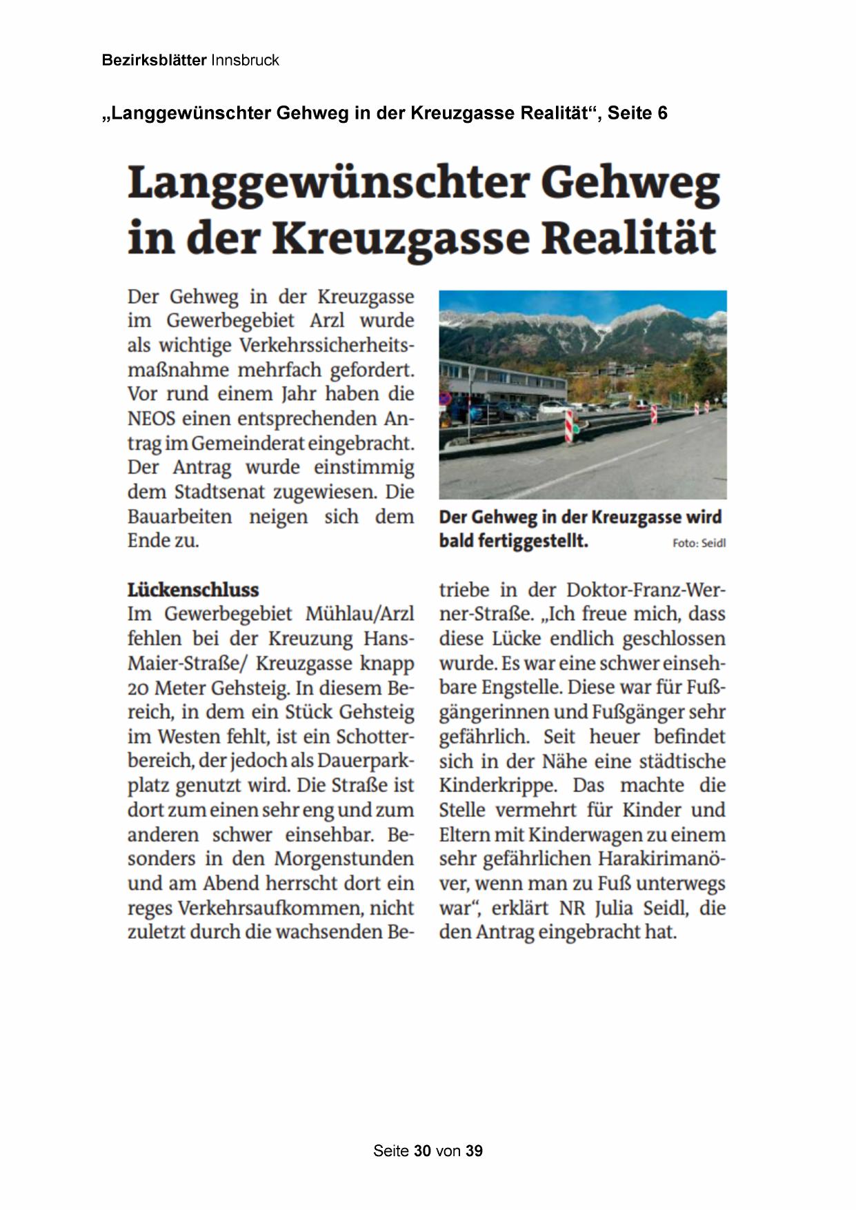 „Langgewünschter Gehweg in der Kreuzgasse Realität“, Seite 6