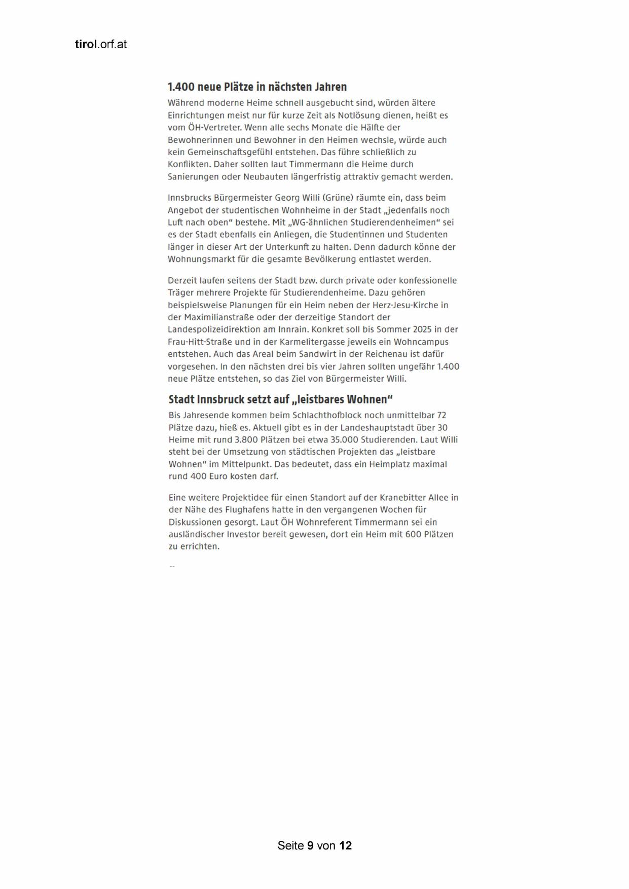 Heime mit rund 3.800 Plätzen bei etwa 35.000 Studierenden. Laut Willi