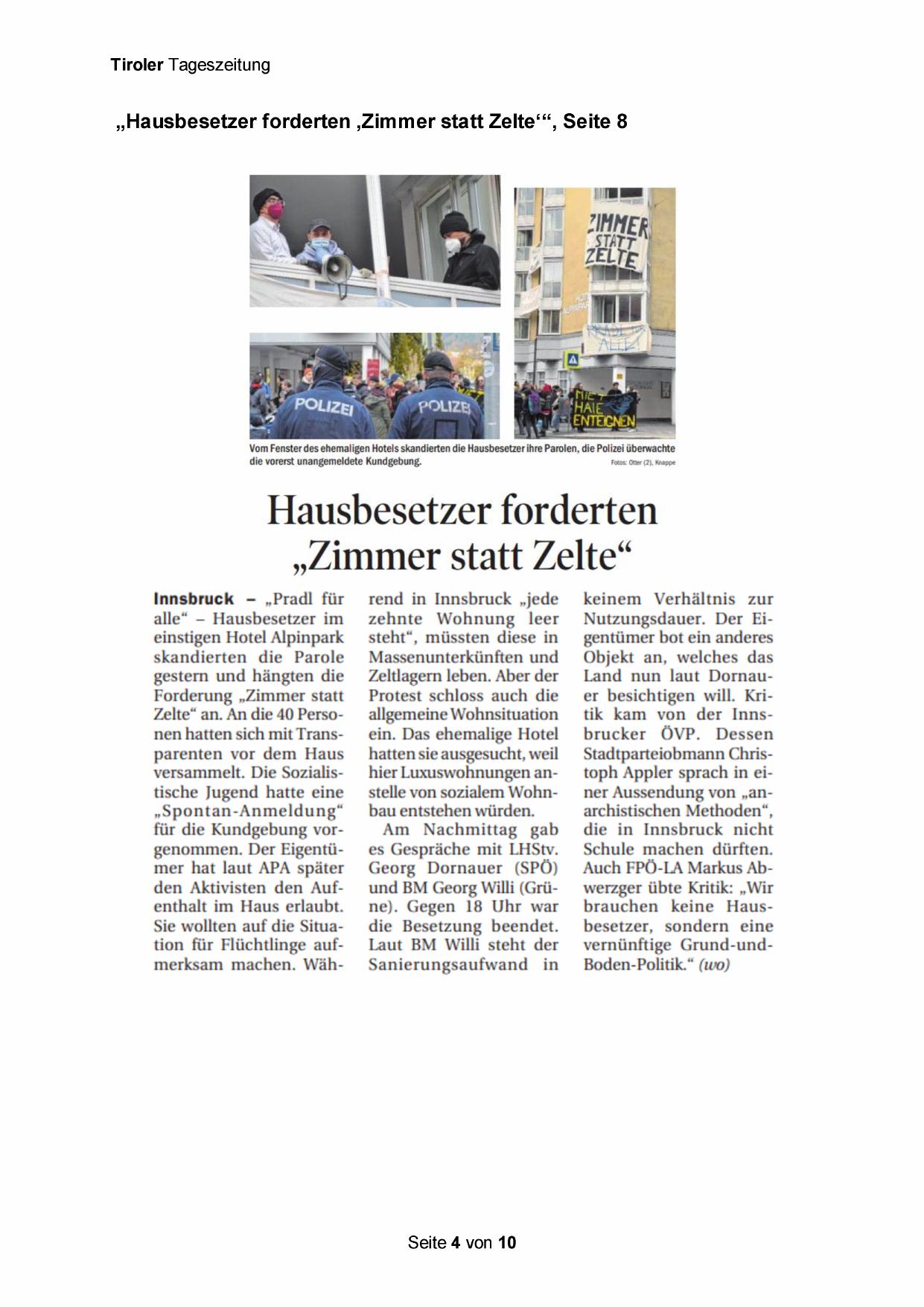 „Hausbesetzer forderten ‚Zimmer statt Zelte‘“, Seite 8