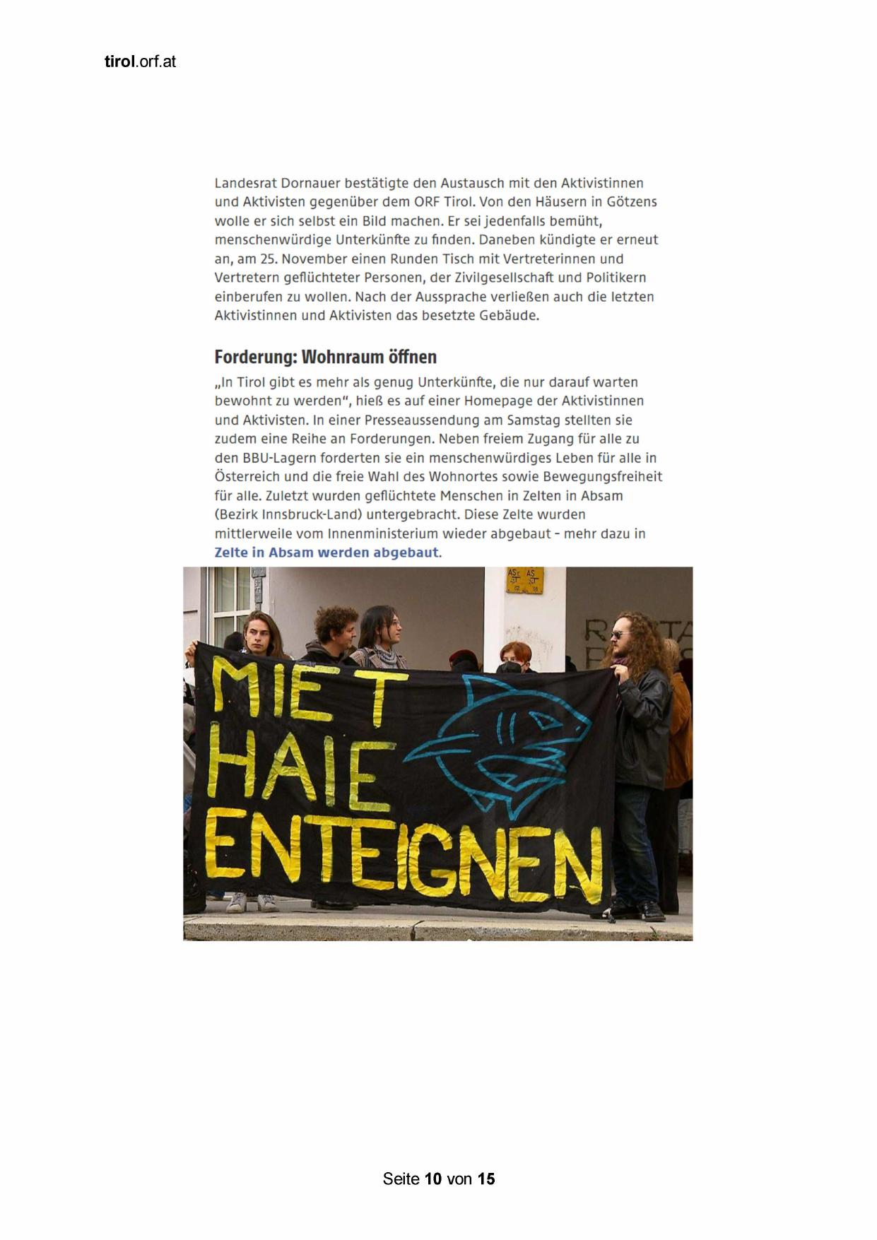 und Aktivisten gegenüber dem ORF Tirol. Von den Häusern in Götzens
