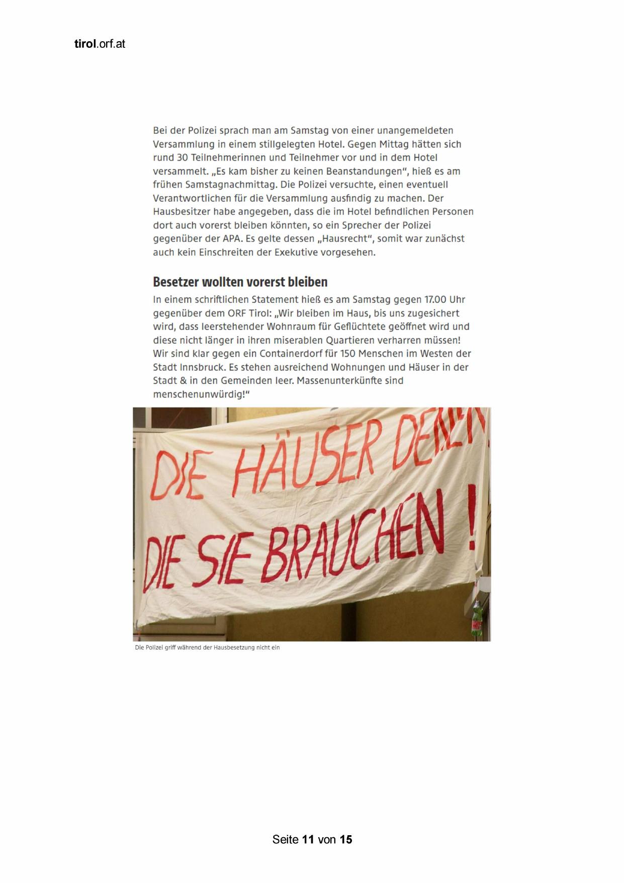 gegenüber dem ORF Tirol: „Wir bleiben im Haus, bis uns zugesichert
