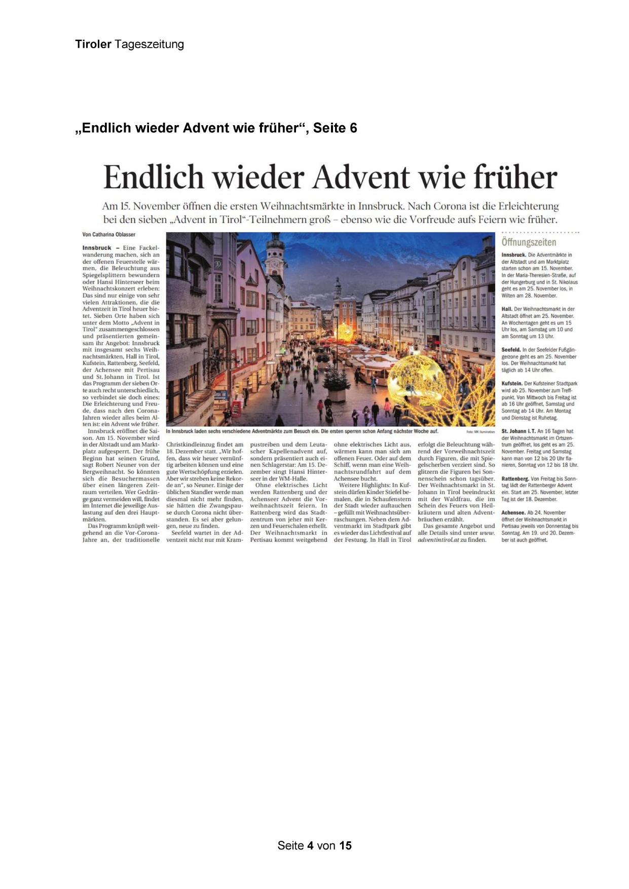 Adventzeit in Tirol heuer bietet. Sieben Orte haben sich