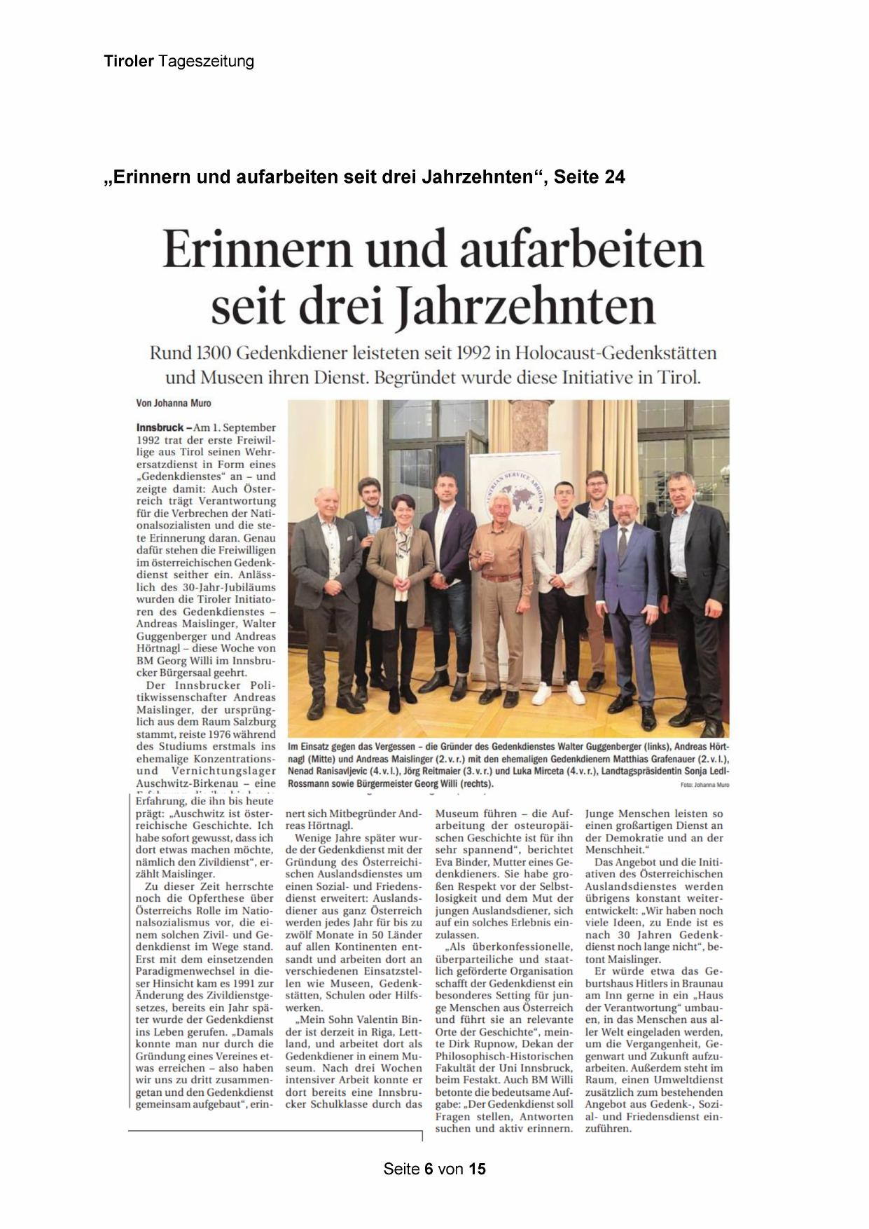 im österreichischen Gedenkdienst seither ein. Anlässlich des 30-Jahr-Jubiläums