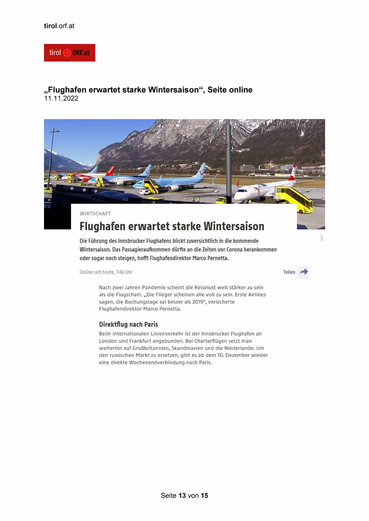„Flughafen erwartet starke Wintersaison“, Seite online