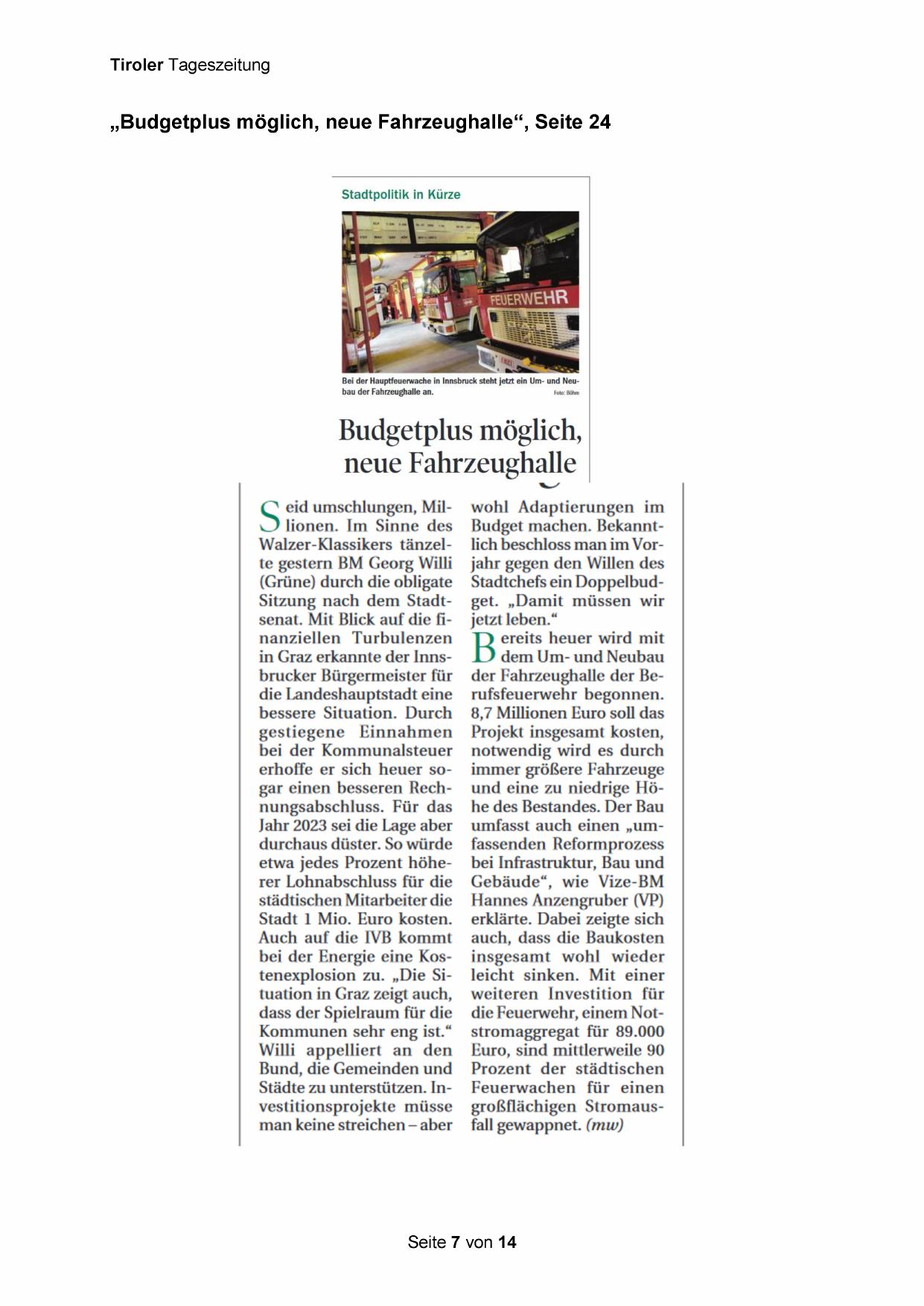 „Budgetplus möglich, neue Fahrzeughalle“, Seite 24