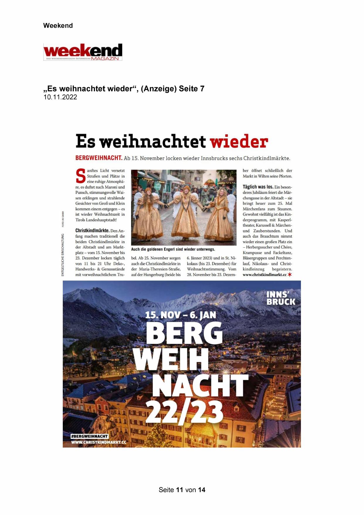 6. Jänner 2023) und in St. Nikolaus (bis 23. Dezember) für
