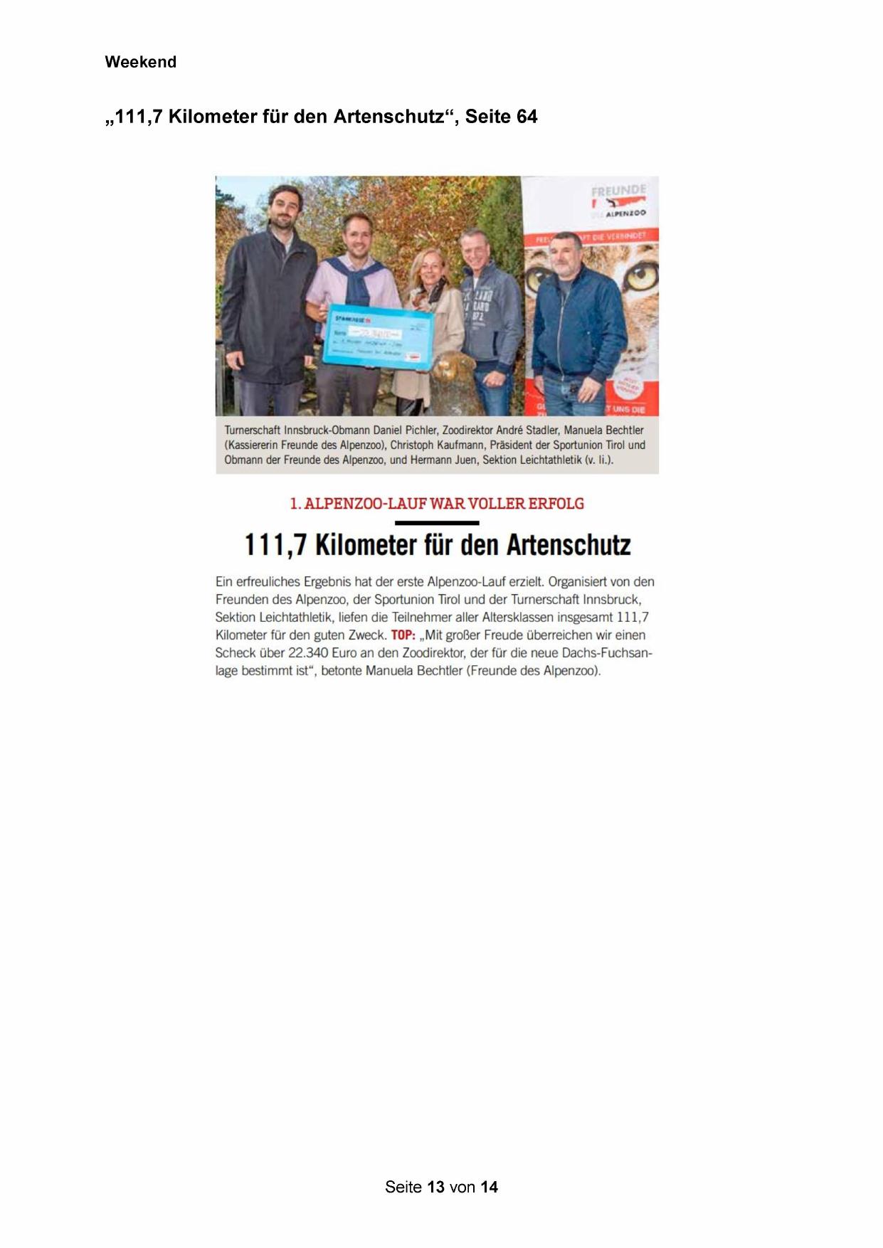 Freunden des Alpenzoo, der Sportunion Tirol und der Turnerschaft Innsbruck,